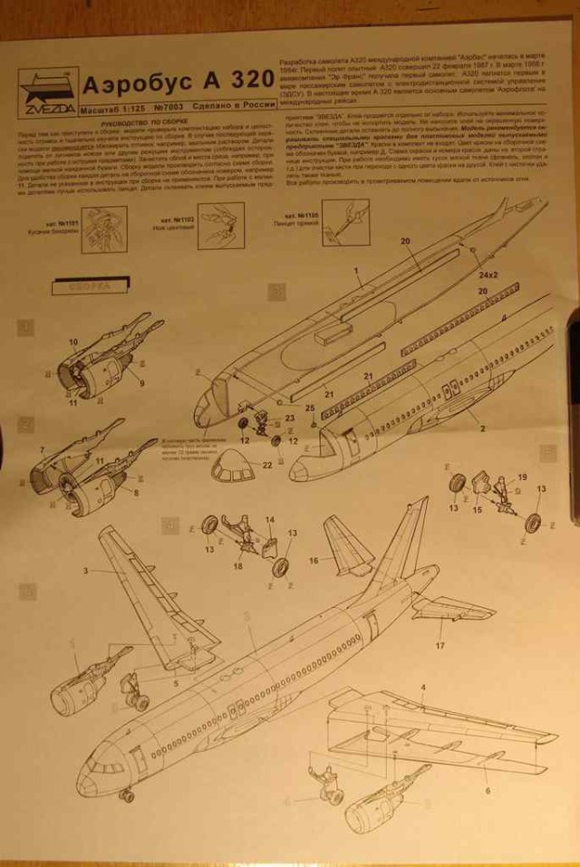 В коробке три литника белого цвета и один литник прозрачный. Похоже эта модель производства Revell. Переупакованная Звездой. Качество литья хорошее. Инструкция подробная. Расшивка внутренняя.
