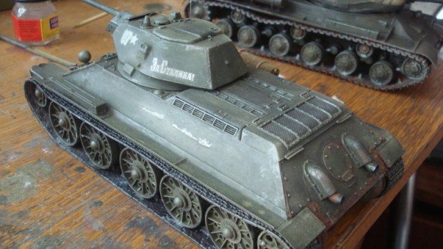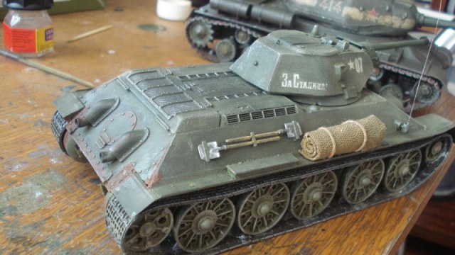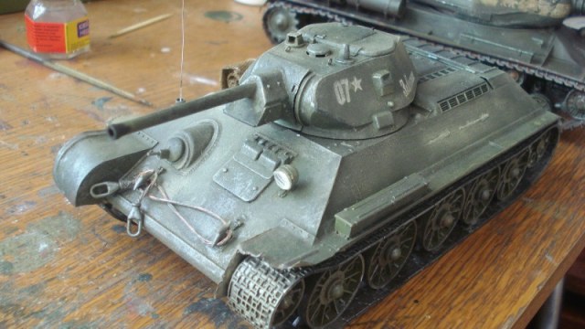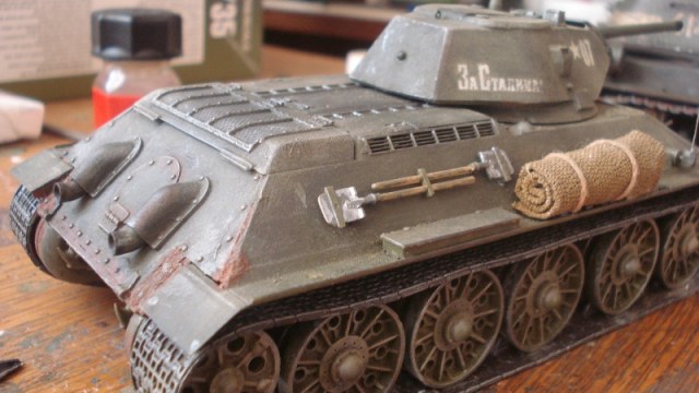 Окраска кистью акрилом Звезда. Всё впечатление испортили гусеницы поэтому слегка не доделал. Вот найду хорошие наборные гусеницы и доведу до ума.