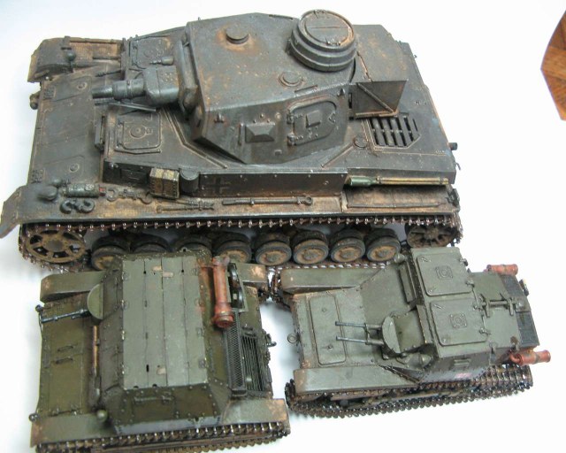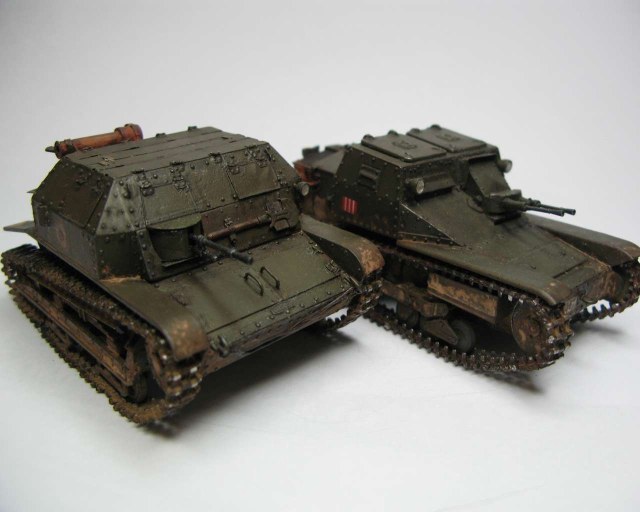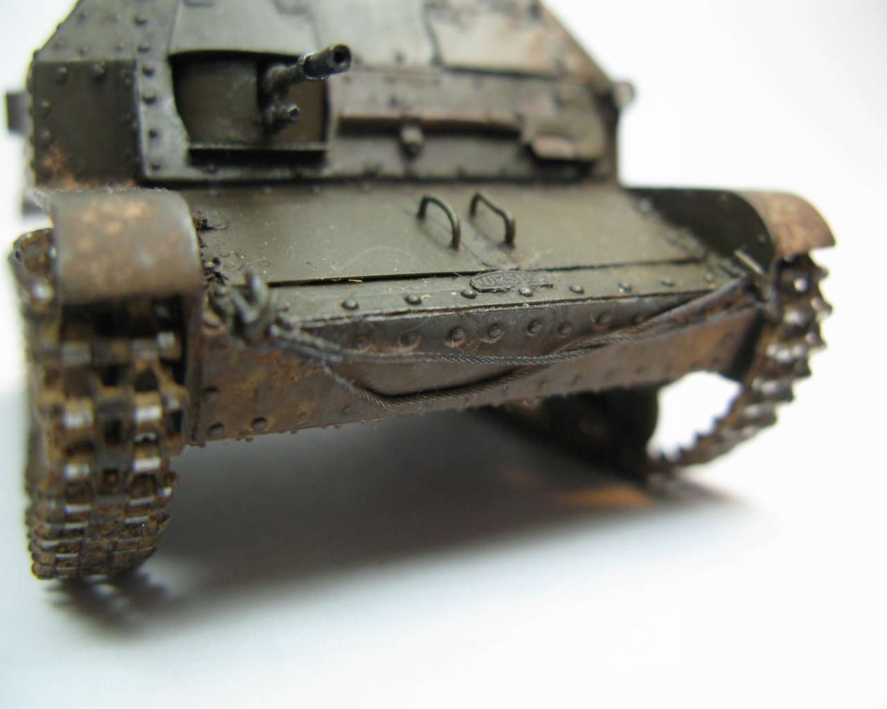 Танкетка конечно не плоха, но много чего режет глаз - совсем не те гусеницы (у вас от лоррейна), местами криво склееное травление, всевозможные наплывы и повсеместная толщина краскослоя. Интересно, а как танкетка вообще ездиет, если ведущие колеса совершенно лысые, т е без зубьев? XD