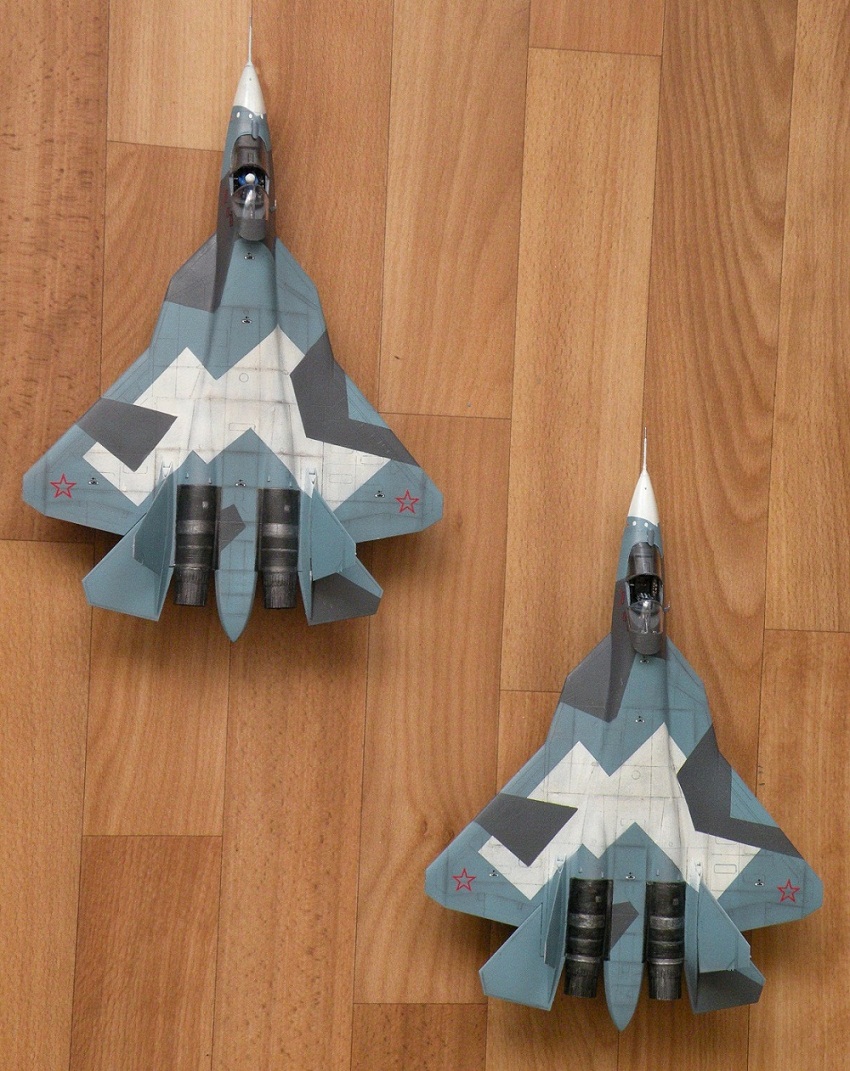 Да и вообще ПАК-ФА куда больше смахивает на логичное развитие линейки Су-27 с вкраплениями "Беркута", чем на попытку создать клон Раптора. На этом предлагаю закончить, ибо ведение дискуссий в ветке обсуждения модели есть неуважение к её автору.