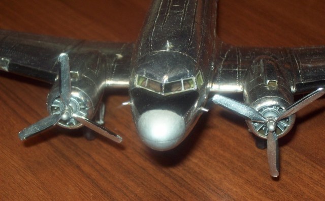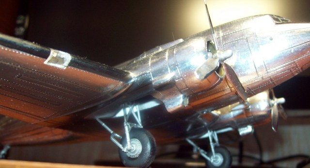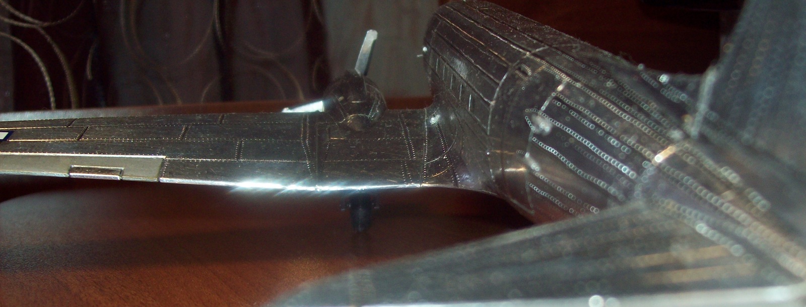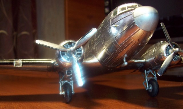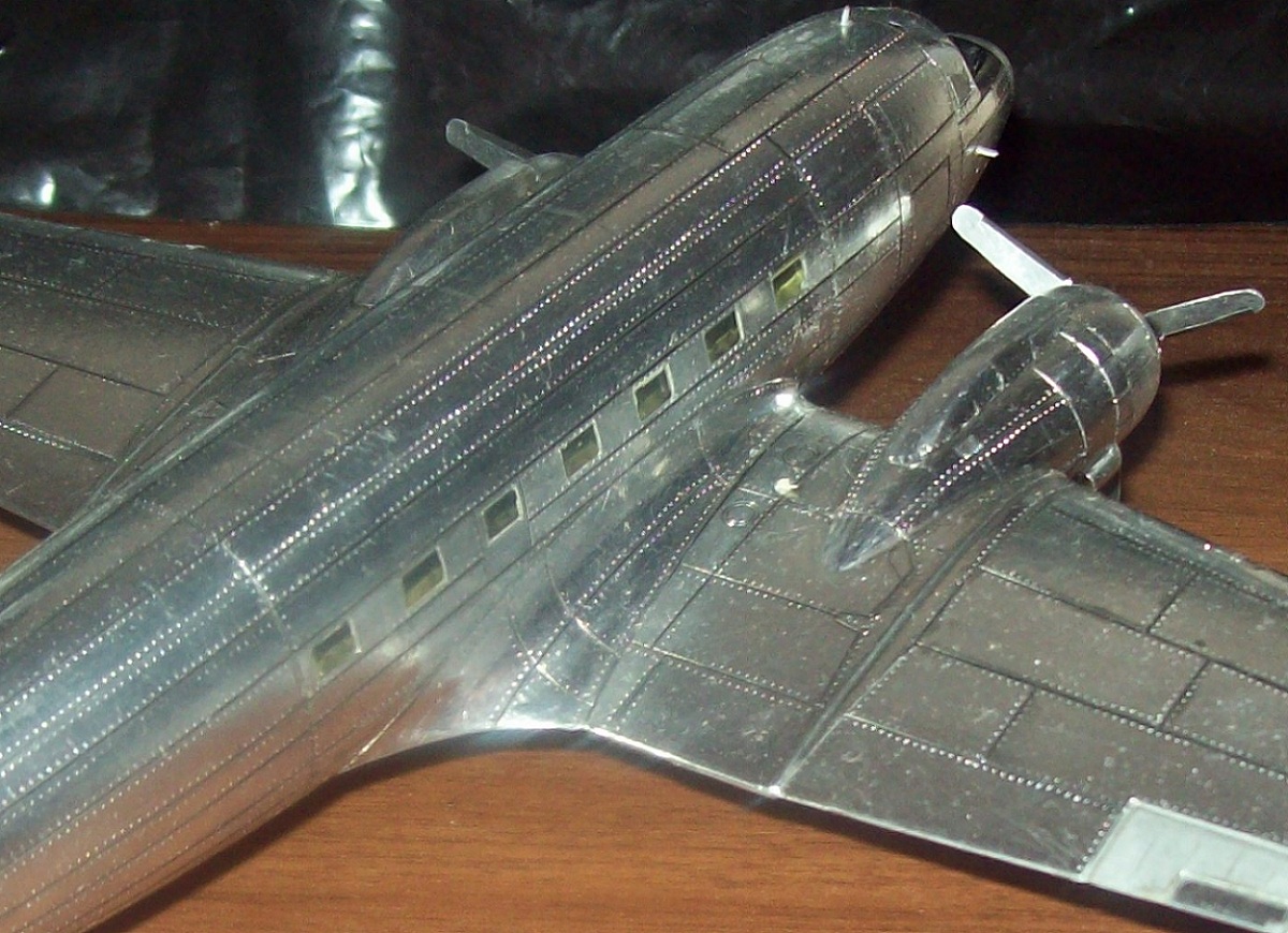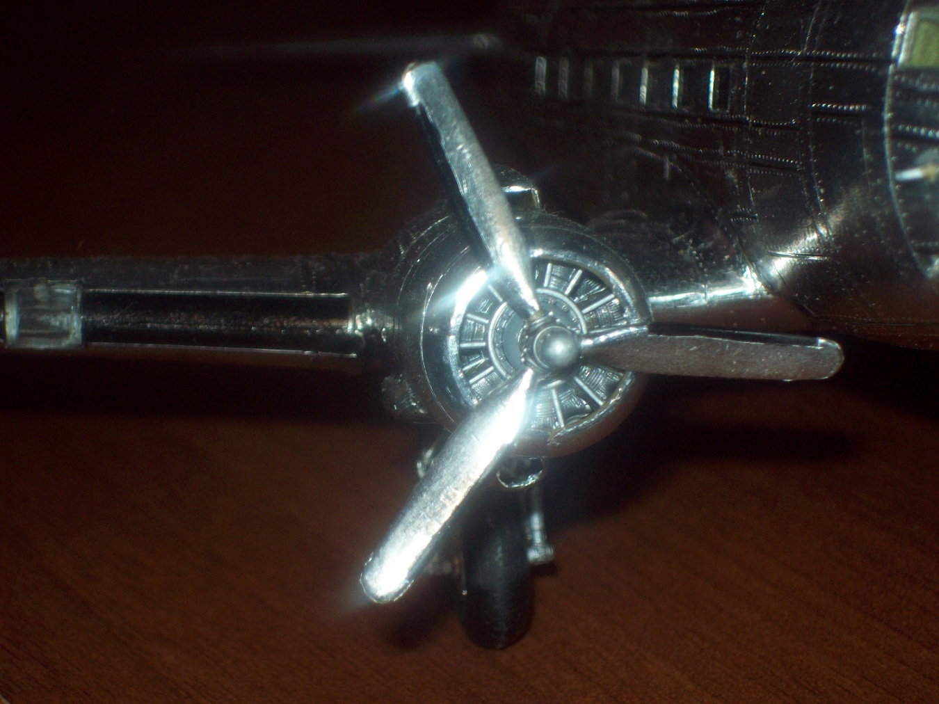 Не знаю какой бы хром передал такой натуральный полированный оттенок металла... Ради этого стоит заморочиться с фольгой, тут зачёт. Не очень обрадовали клёпка, крой - показались грубоватыми, так же не очень аккуратными выглядят лопасти, их можно было и краской окрасить, и некоторые места по границам фольгированных участков (типа вокруг лобовика тоже хотелось бы увидеть в более аккуратном исполнении. Цилиндры моторов блестят, можне было и оттонировать.