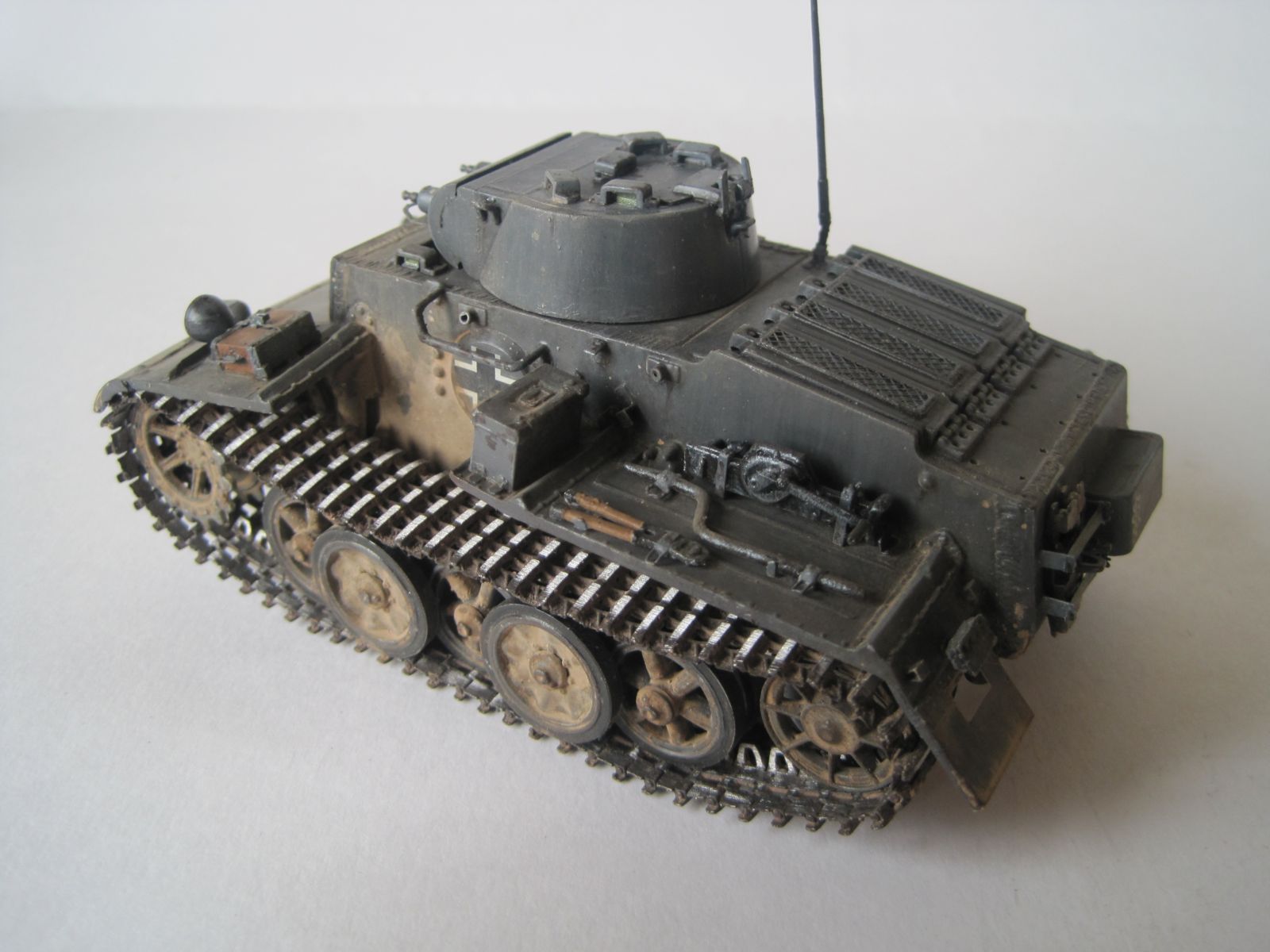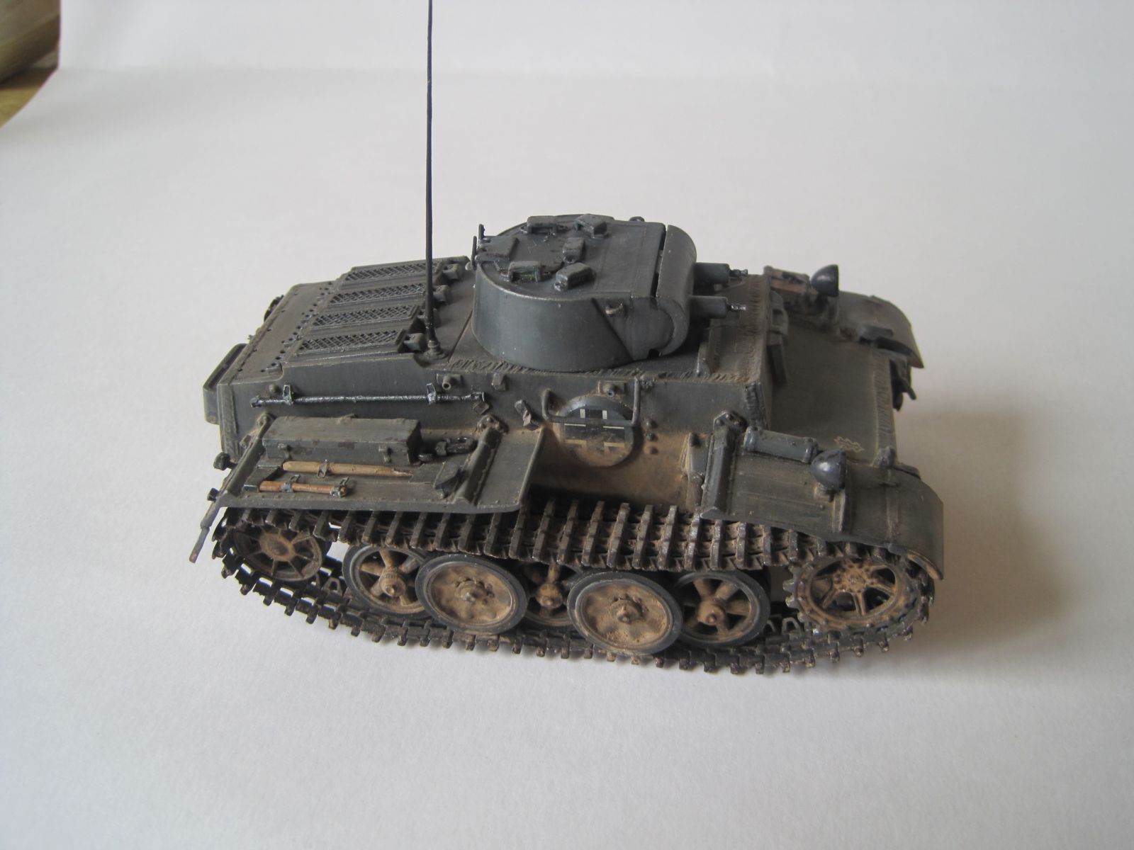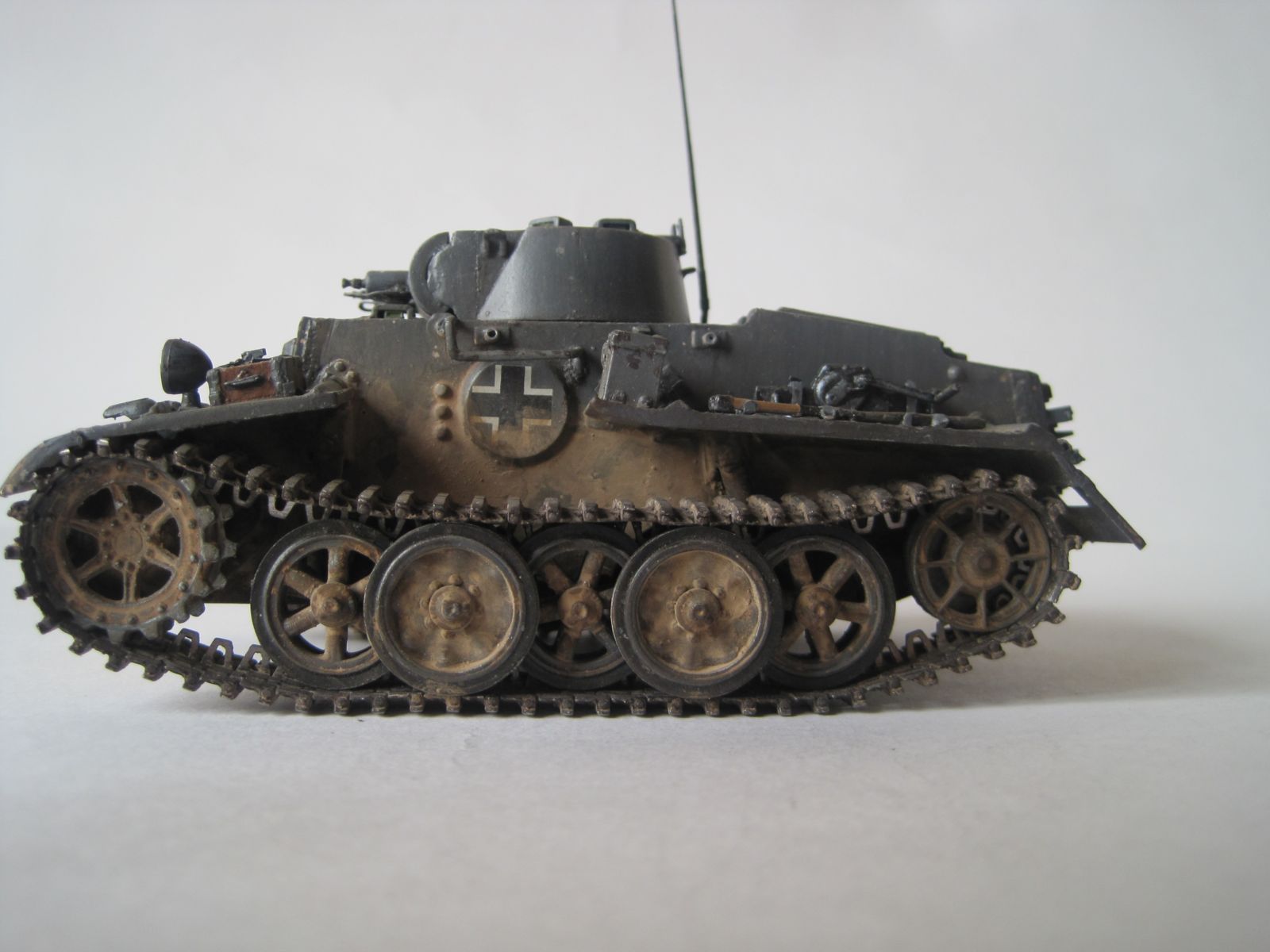 Приветствую друзей-каропчан! Представляю свою четвертую модель на сайте - легкий танк Pz. 1 ausf. F. Модель собиралась около месяца в перерывах между поиском работы. В какой-то мере модель для меня явилась экспериментальной: впервые использовал полный набор травления от "Эдуарда", фриуловские гусеницы, стволы от "Модел Пойнта", попробывал сделать имитацию сварных швов и технику масляных точек.