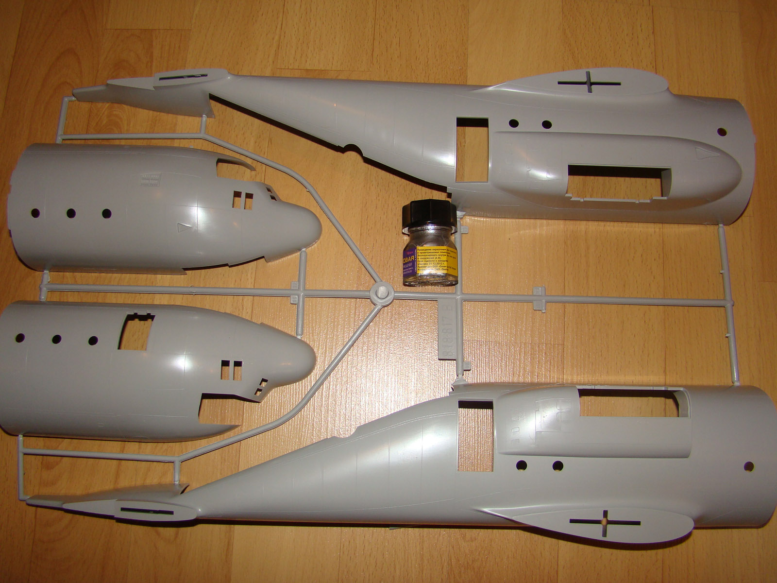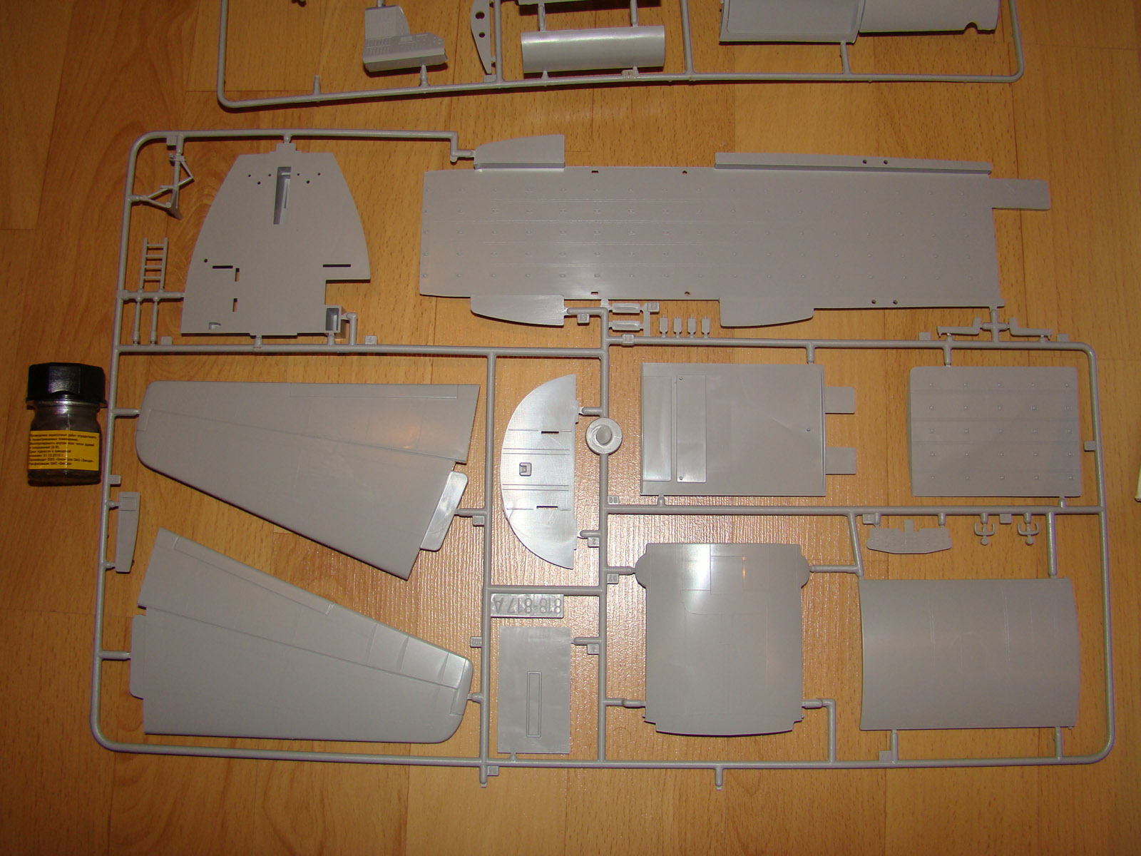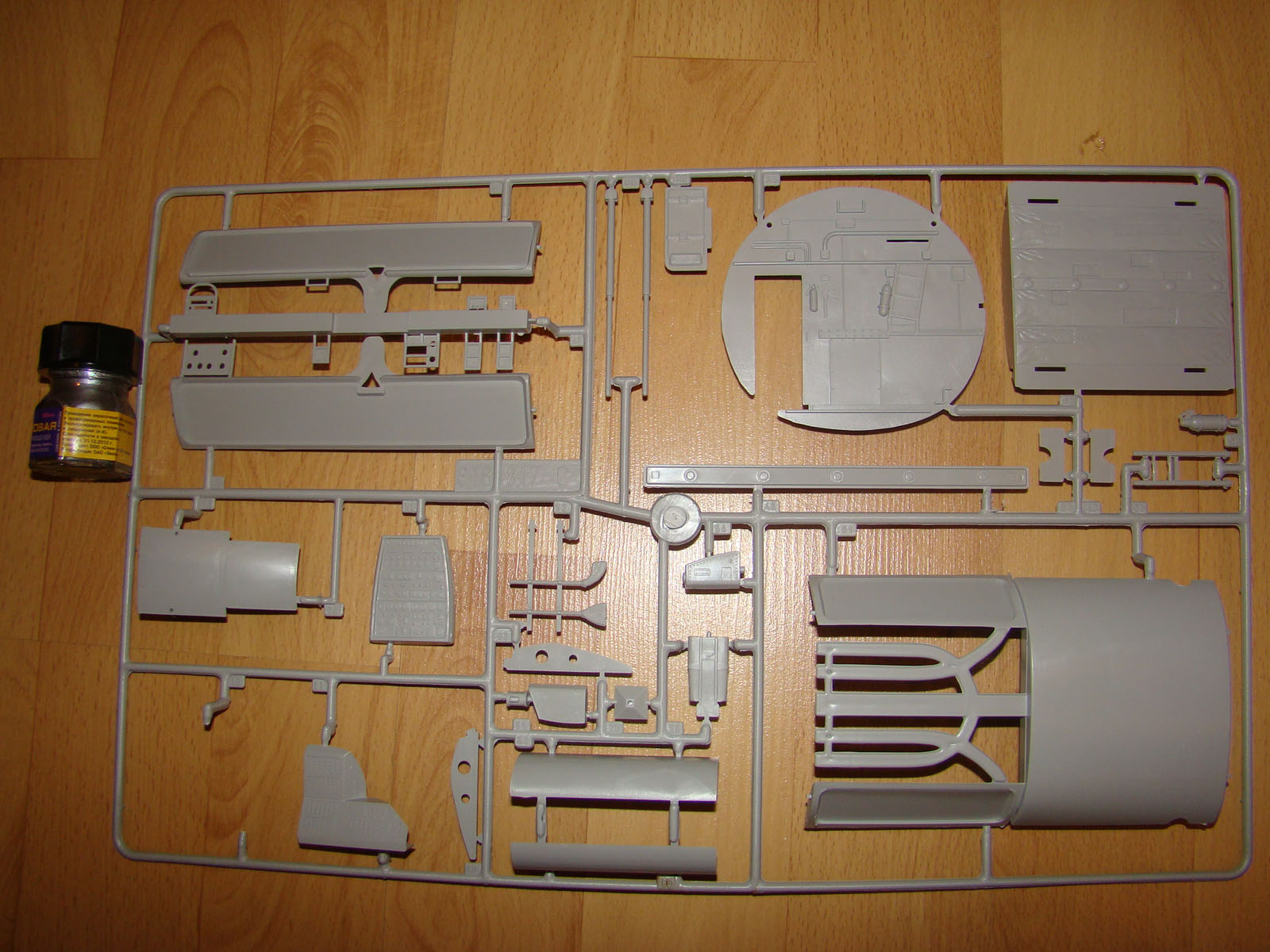 Здравствуйте. Перед Вами наверное самая большая модель легендарного Геркулеса). Приобреталась мной примерно за 2600 рублей. В собранном виде длина самолета около 62 см, размах крыльев еше не мерил). Коробка крепкая, открывается вверх. В коробке находится (по крайней мере в моей) 7 рамок с литниками+1 с остеклением, инструкция (понятная и подробная) и лист с декалями. На литниках следов облоя нет, все выглядит очень аккуратно. Декали и типы окраски для 3-х различных вариантов. Если хватит терпения собрать а самое главное покрасить, то выложу фотки). На фото баночка со "Звездой" для сравнения, красить ей точно не буду).