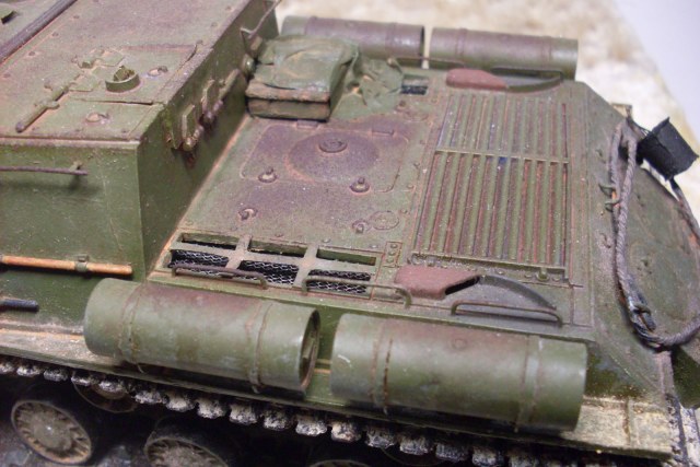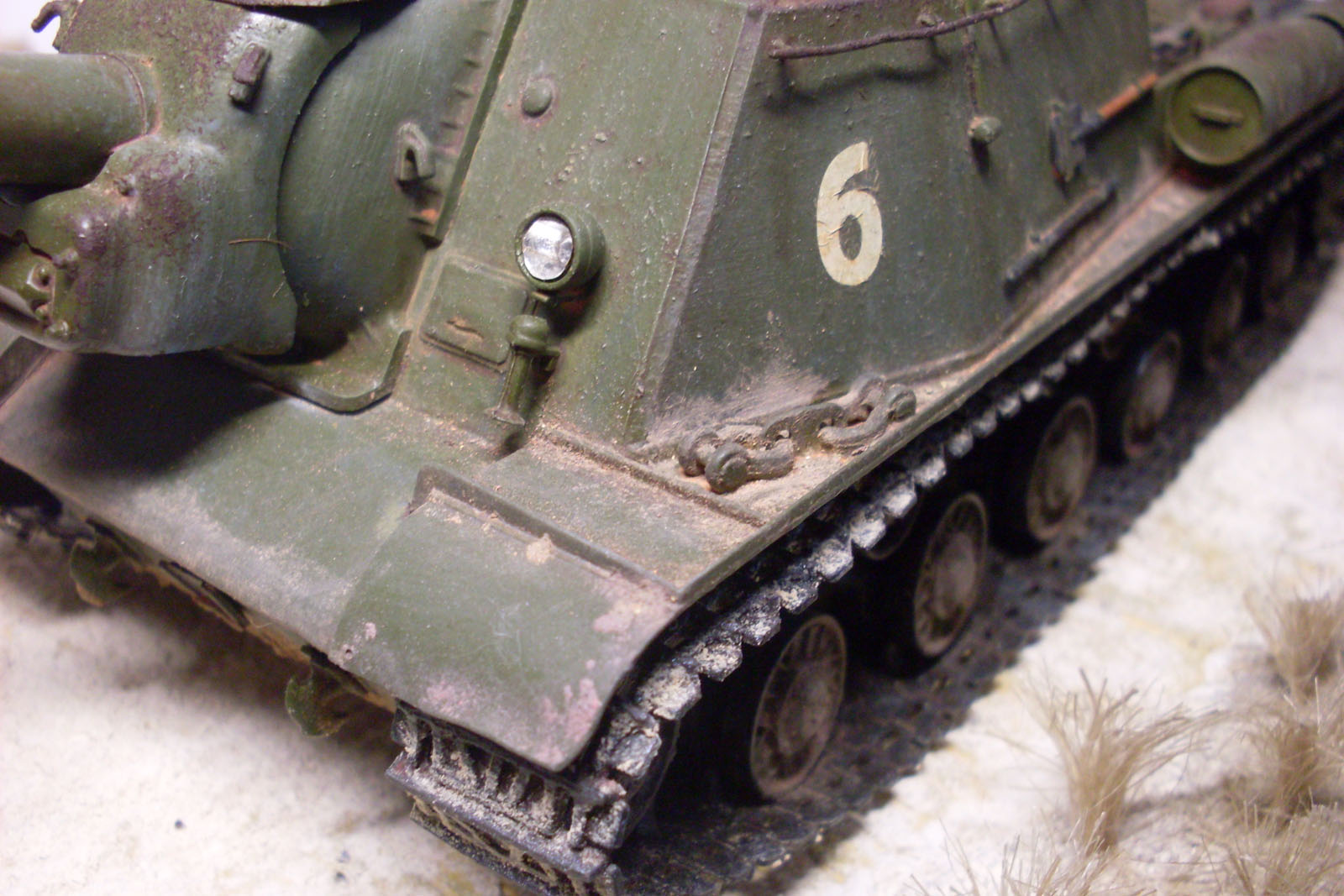 здорово,но мне кажется,что при движении по такой дороге слой пыли на самоходке должен быть немного толще.спереди на крыльях норамально,а вот на корме явно её не хватает.