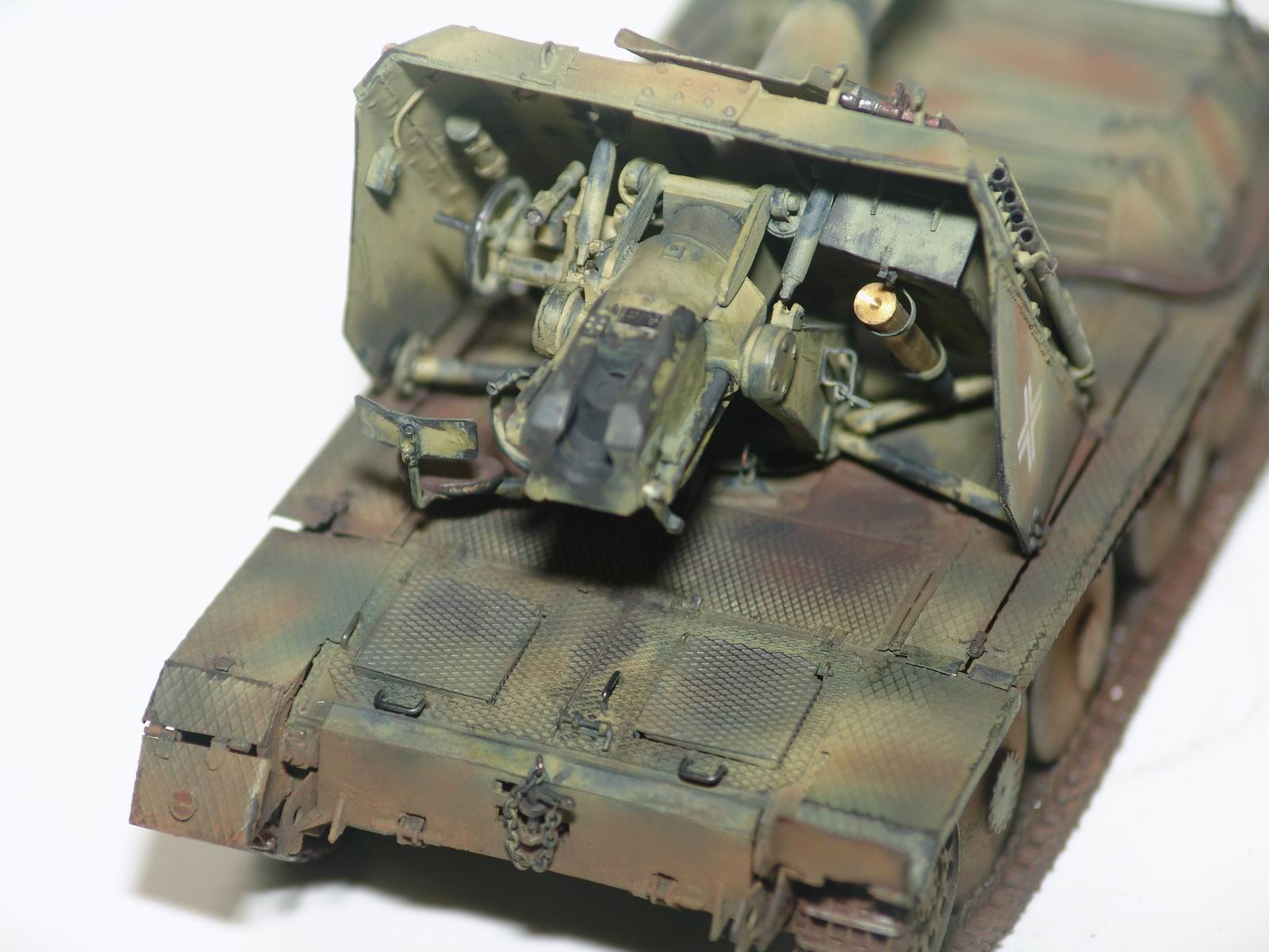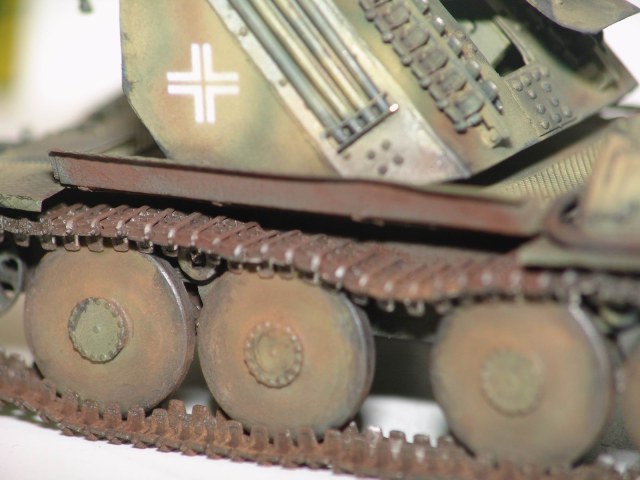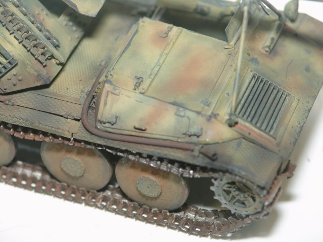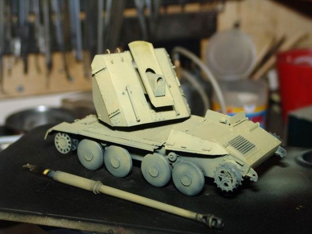Модель от фирмы ADV (смола). От модели взял только корпус и лафет орудия, все остальные детали были выкинуты из за убогого качества исполнения. Гусянка наборная металлическая, точенный ствол, жесть, полистирол.