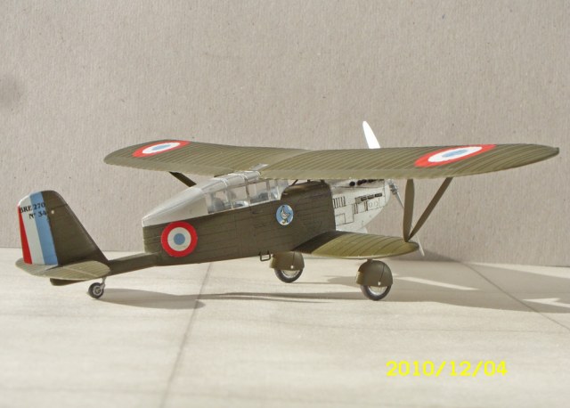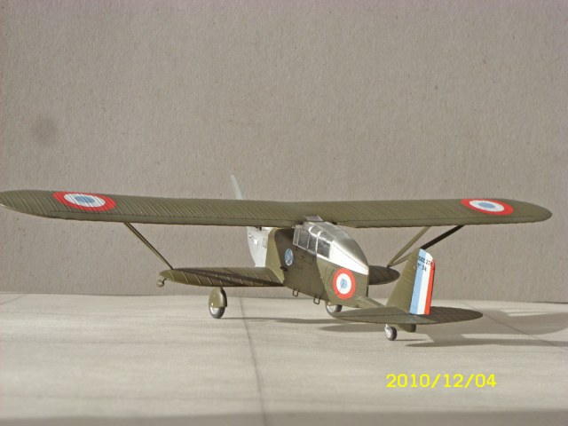 Именно эта модификация не воевала - это самолет связи. Другая модификация ( которая у меня) имеела открытую кабину и открытую турель.Модель имеет два варианта окраски - французский разведчик 40го года и китайца 38го ( модификация с лобовым радиатором - жуть). На сайте airwar.ru можно про этот самолет почитать.