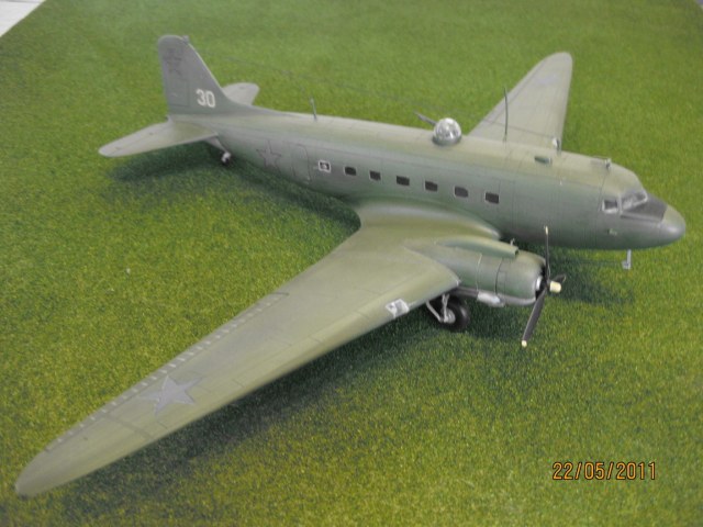 Вы абсолютно правы - это не полноценный Ли-2. Не та мотоустановка и не то шасси. Еще добавлю, что у Ли-2 - ночного бомбардировщика на месте "люка для негров" или проще говоря, люка в пилотской кабине по левому борту было остекление, а из носа торчал неподвижный пулемет. А в кабине штурмана имелись окошки, отсутствующие на Дугласе. Вызывают сомнение звезды на крыле сверху, да и сам камо, в войну он чаще был двуцветный. А собственно сборка и окраска - хороши.