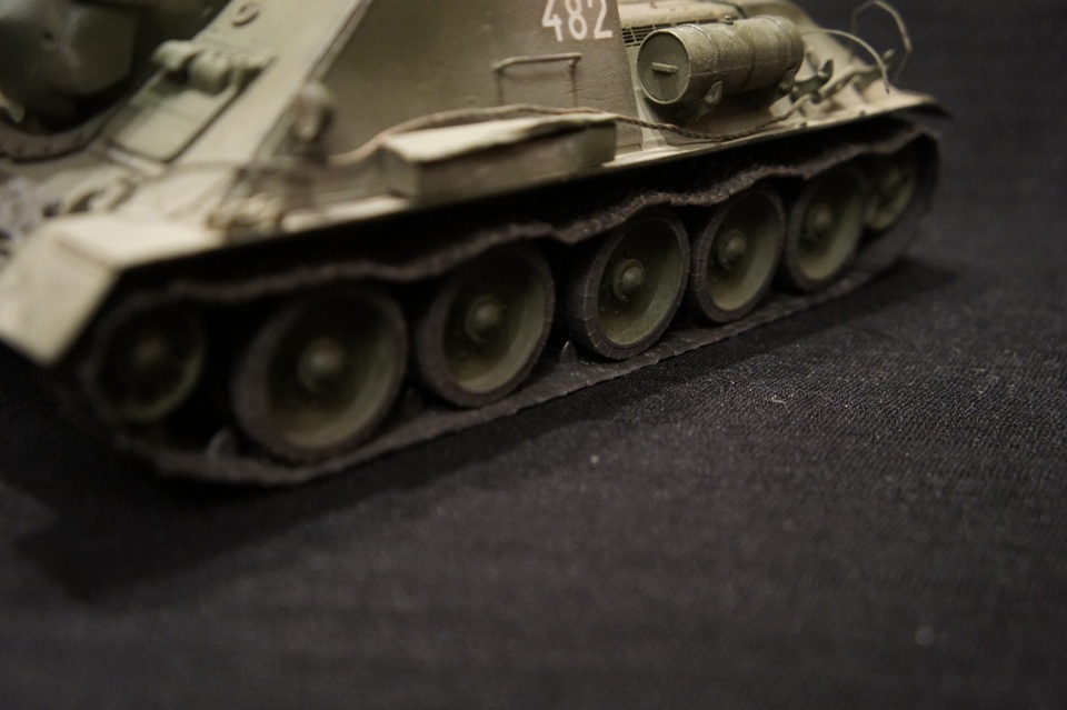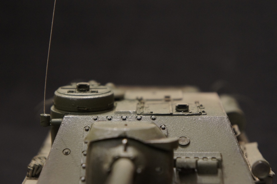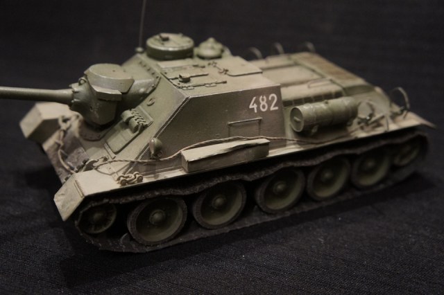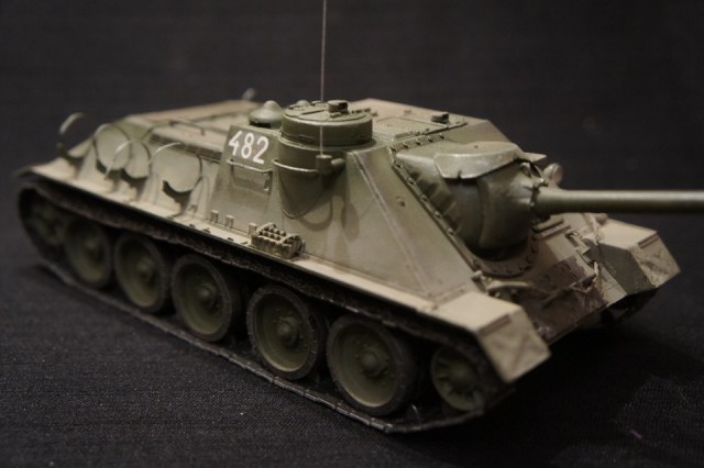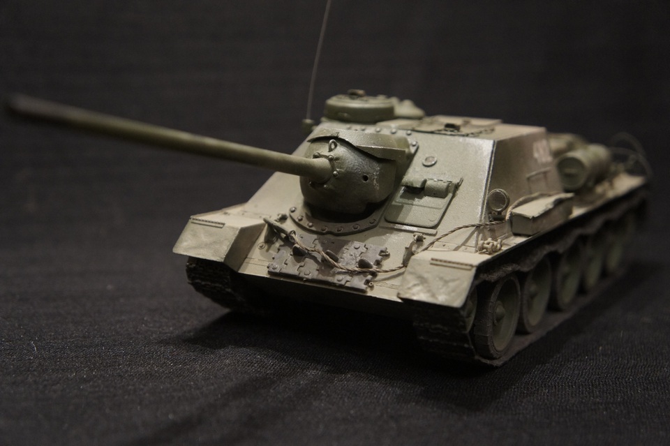 су-100 собраная без доработок...окрашена аэрографом,тонирована тамиевскими сухими пигментами и сухой кистью..