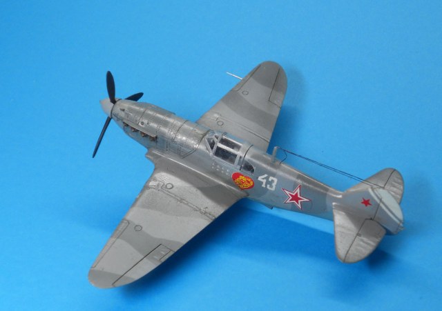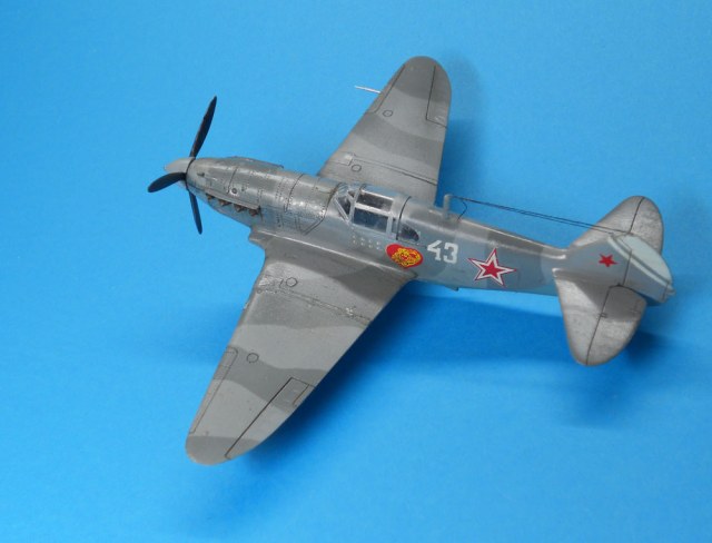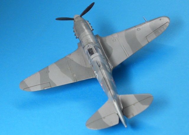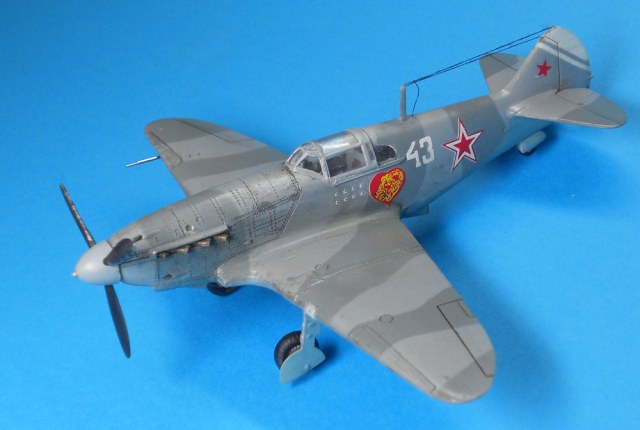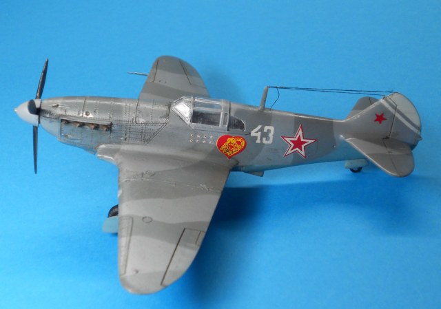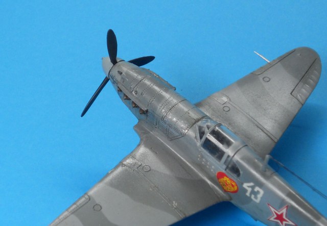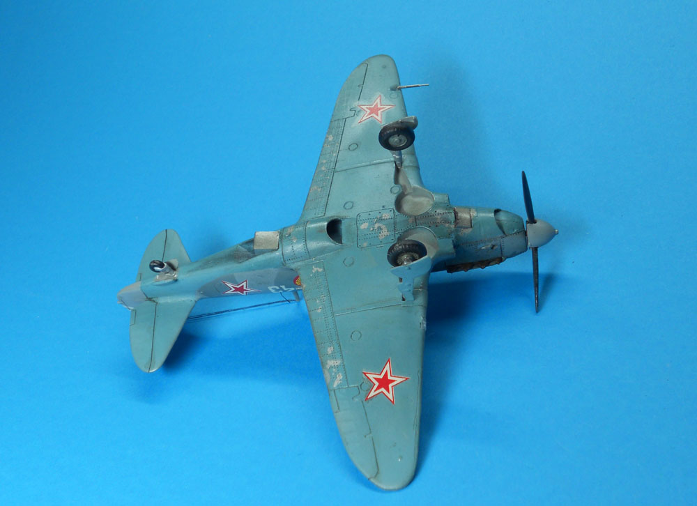В целом впечатление неплохое. Наверное надо указывать какой серии эта модель. Если не ошибаюсь, это ЛаГГ-3 66 серии. Цвет камуфляжа конечно же не такой, серый и серый должны быть намного темнее. Очень толстые стойки шасси, на них же отсутствуют штоки уборки в ниши. Закрашены БАНО на крыльях. Лучики антенны должны исходить от выступающего штырька. У вас один перенесен на РН.