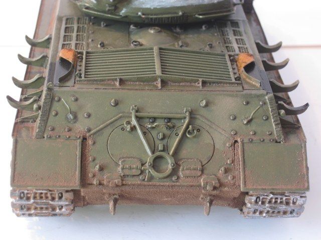 Корпус: бронировка щели механика-водителя, проводка к фаре и сигналу, переделаны и перенесены крепления крыльев, заменил решетки воздухозаборников на металлическую сетку, добавил и заменил рым-болты и кольца в них, торсион кормовой плиты, крепления тросов.