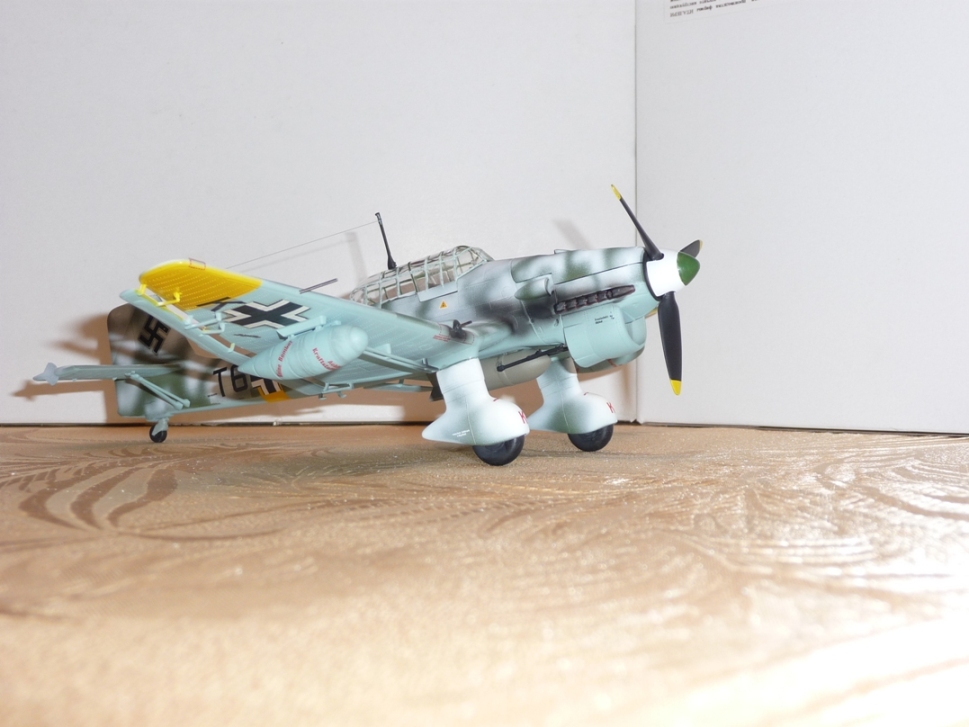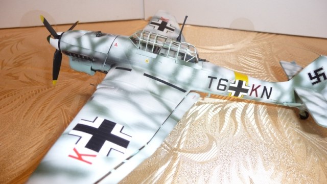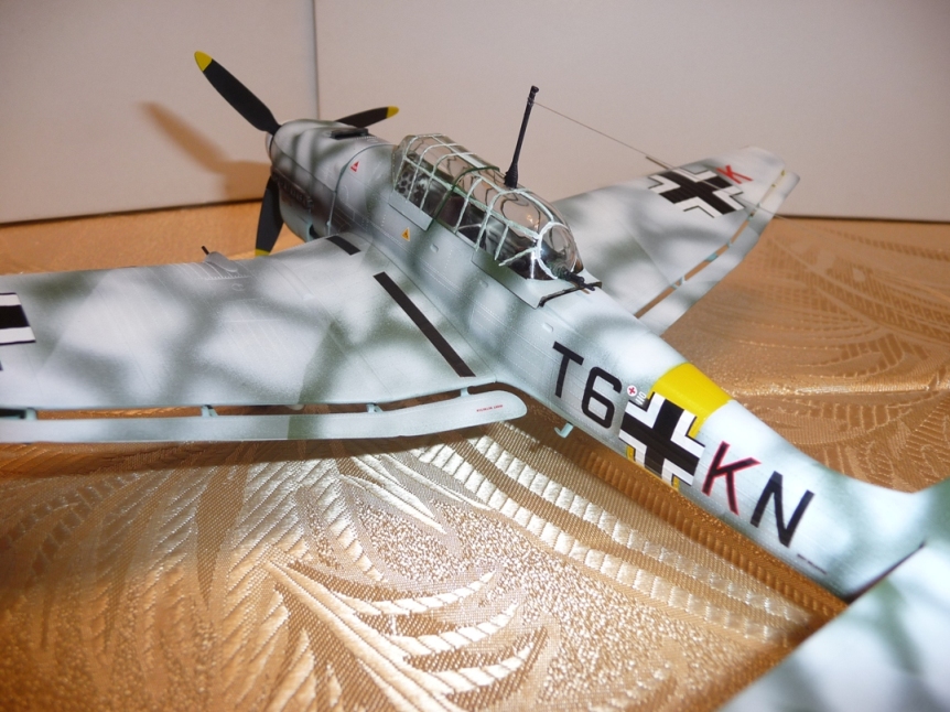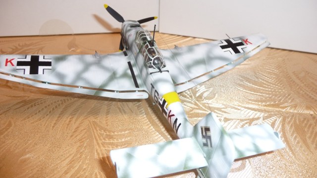 Здравствуйте всем! Достроил таки Лапотника в 48-ом. Долго его искал в этом масштабе и немного разочарован. Модель какая-то грубоватая... Детализация слабая. все, что пытался напхать в кабину скрыл фонарь с частой оплеткой. Сфотографировать нутро через фонарь так и не удалось. Шаси как сами понимаете не складывающиеся, поэтому даже шлангов никаких никуда не присобачишь. Расшивка с заклепками наружная. Т.к. она очень рельефная и частая подумал. что рисковать и срезать ее с моими косыми рукками рисковано... Поэтому всю спортивную "злость" вложил в камо. Сдалал его по мотивам зимы 42 от 2 -ой StG.