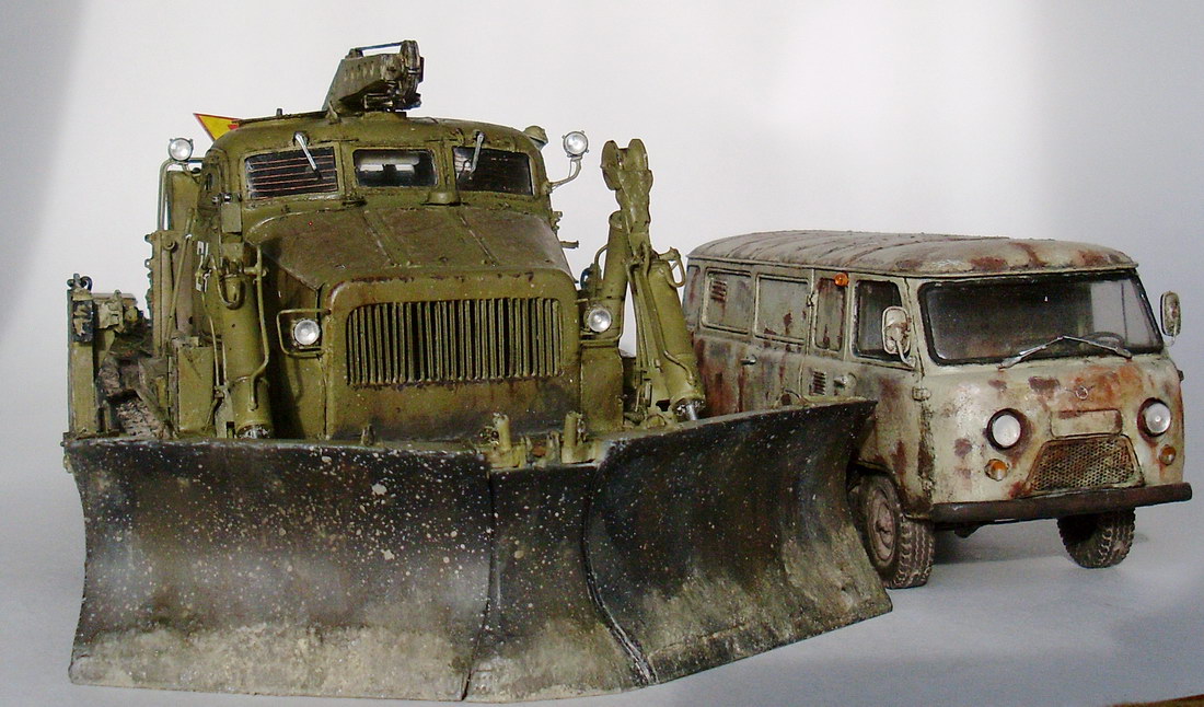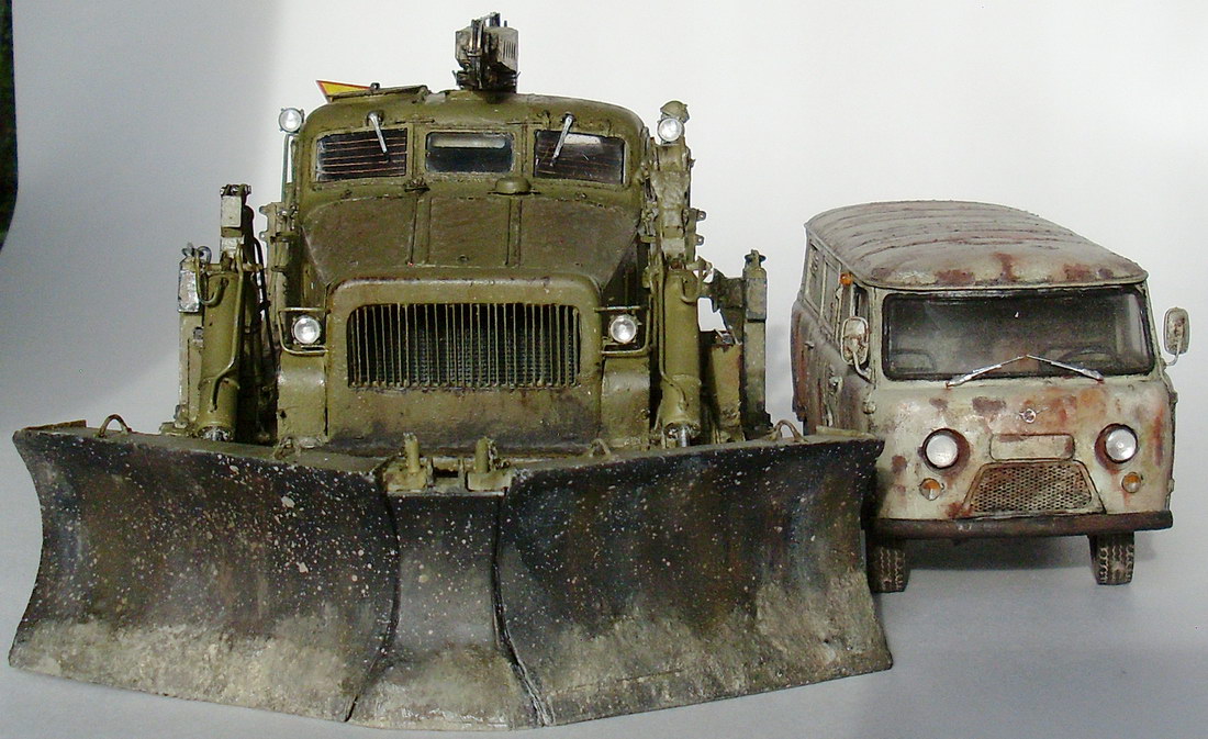 Блиин! А мою челюсть никто не видел, отвалилась теперь не найду никак))) Суперабл!!! На такой машине меня еще в детстве дядька катал. У вас она как реальная вышла, на первом фото прям как в душу смотрит с серьезным видом). А цвет нормальный, судя по сроку эксплуатации краска уже выцвевшая. Очень хотелось бы увидеть этого зверя на виньетке, застуканным во время работы на каком-нибудь отвале...