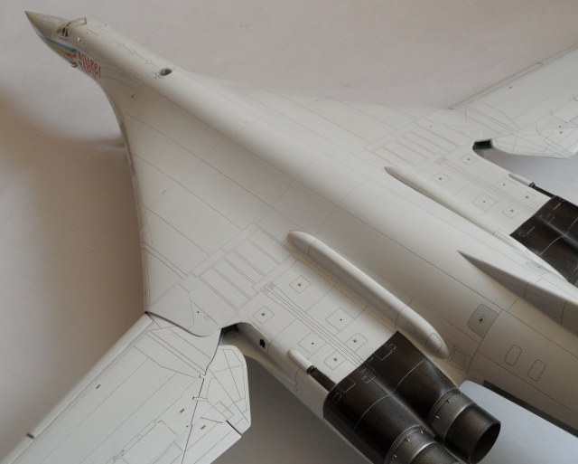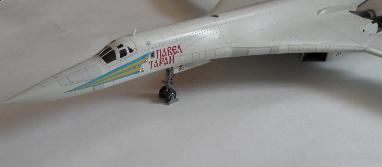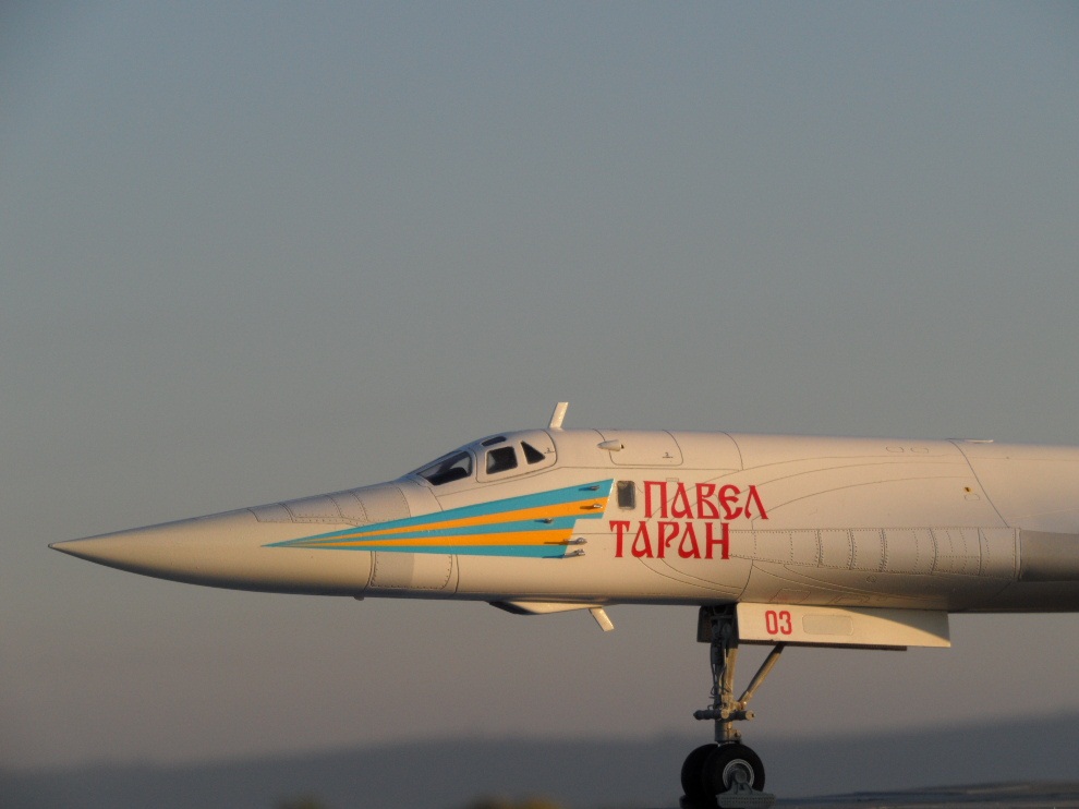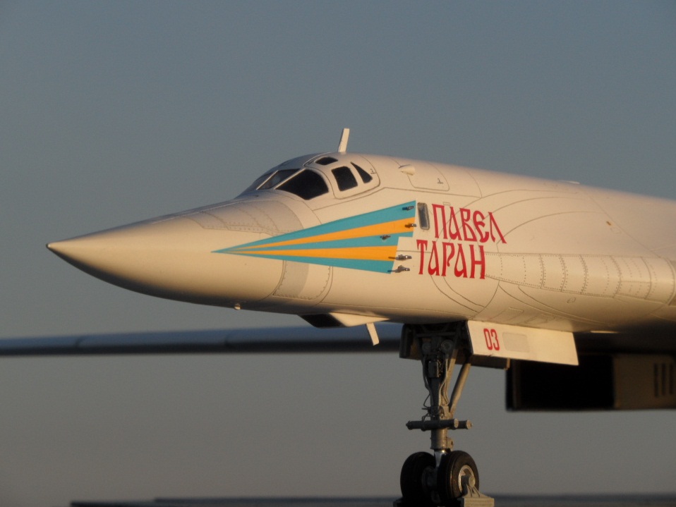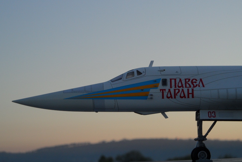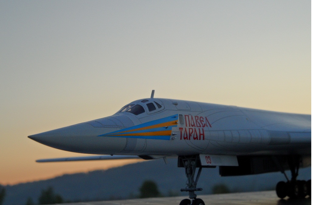 Всем привет! Наконец то я закончил очередного монстра, ту 160 в моей коллекции самый большой самолет, места под него слава богу есть. И он пополнил ряд с ту 22 м3 и ту 95.Постройка- ну что тут сказать, не ахти стыковочка то, особенно фюзеляж, огромный и очень жидкий, приходилось его укреплять и изворачиваться склеевая две огромные половины, а потом долго и нудно восстанавливать не самую простую расшивку- расшивку вообще всю пришлось углублять, клепку также. Работать с белым цветом в таком количестве тяжело. Крылья я сделал съемными- спасибо господину Кену Даффи, только вместо медных штырьков я сделал из плекса. Теперь модель легко перевозить, да и хранить можно на узкой полке). В остальном все устроено так же как и на модели Кена . Про ракеты столько споров прочитал, но все же я использовал из набора,т.к я не планировал открывать бомбоотсек, да и не гоняюсь я за чертежами и миллиметрами. Кстати Кен Даффи писал в своей статье что если не выпускать механизацию крыла то придется что то там резать и пилить, так как модель уже изначально продумана именно с выпущенной механизацией- так вот ничего подобного( я не планировал ее выпускать, как на предыдущем ту 160, при протирании постоянно отламывались интерцепторы, да и пыль оттуда очень сложно вытереть) , пришлось малость подшлифовать с боков два интерцептора с каждой стороны и вся механизация успешно убралась). Киль и стабилизаторы оставил подвижными. В сборке модель не самая легкая))), если не сравнивать с амодел конечно. С боков фюзеляжа в районе окон оператора с обоих сторон пришлось сошкуривать непонятную выштамповку, и опять резать расшивку.Покраска- модель окрашивал из баллончиков, мотипом, 4 разными красками, светло серой, белой, белосерой, и матовой белой. Декали от фирмы бегемот- выбрал борт №3 Павел Таран, я не копировал с кена даффи, этот вариант я хотел сделать когда собрал еще первый ту 160, тогда у меня порвалась одна декаль и мне пришлось переименовать его в Василия Сенько, и вот на этом ту 160 я сделал то что хотел. Кстати те первые деколи имели желтую подложку и ужасно переводились, а те которые я получил вместе с этим ту 160 были просто супер, абсолютно прозрачные , отлично перевелись. Проблему с трумповскими пневматиками я решил просто( кто не в курсе пневматики от трумпа имеют с боков сильно глубокие прорези ) Я просто зашкурил их 240 шкуркой . На передней и задних стойках сделал проводку . Грязнить его у меня не поднялась рука, пусть он будет таким чистеньким, как бы недавно с покраски( перед тем как на нем летал Путин борт полностью перекрасили). Самолет очень красивый и очень большой, а вот фотать его не очень удобно, хотел сфотать его вместе с ту 95 , для этого поехали на двух машинах ( на одну крышу авто они вдвоем не влезли) но начавшийся дождь не дал идеи воплотиться сделал только 2 фотки. Впринципе все, как получилось решать вам!