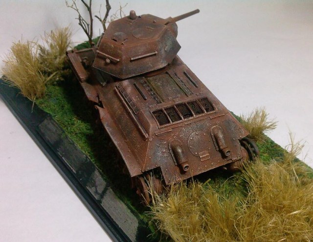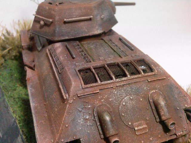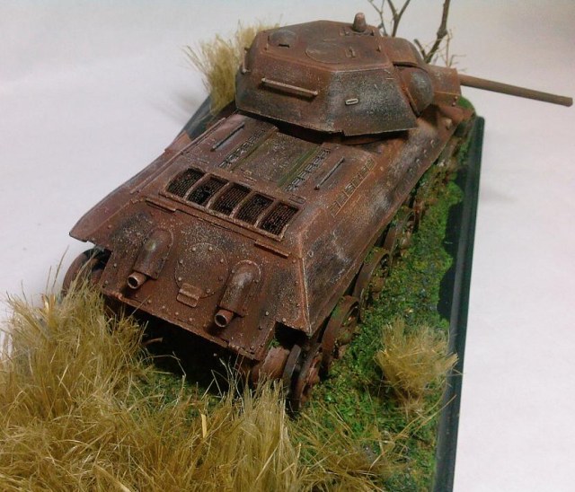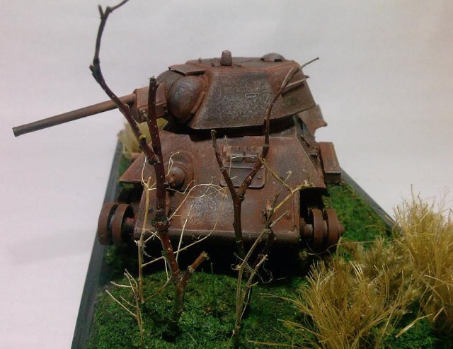 Отличная диорамка,модель действительно смотрится настоящей заржавленой бронёй,всё выглядит весьма реалистично,очень понравилась работа!