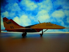 Здравствуйте! Судить и что-то советовать сложно в связи с тем, что, как уже сказали - фото маловаты, да ещё и сфотографирован издалека. По тому, что видно, могу сказать, что если не принимать во внимание, что это НАИОТВРАТНЕЙШИЙ набор от Звезды, то смотрится на этих фото хорошо! Силуэт стрижика и снизу и сверху удался! Но этот МИГ от Звезды, конечно, УУУУУУУЖАС... Но это к производителю... Успехов!