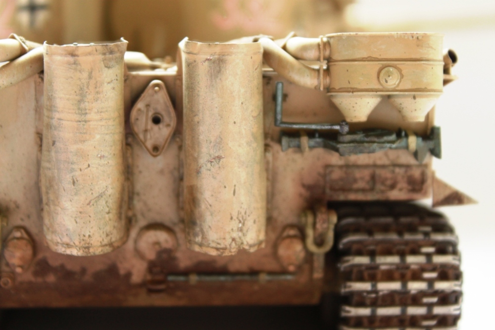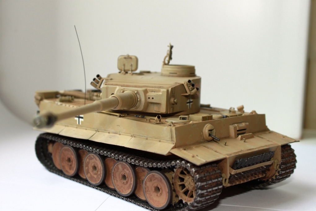 Здравствуйте. Решил сделать наконец самый "злой" ,как говорит мой сын, танк. Практически все из тамиевской коробки, в ходе сборки заменил траки на фриул, кожухи из фольги, добавил решетку из травленки , сварные швы, проводку. Трос не удался совсем - поэтому его и нет. А так вообщем-то что хотел, то и примерно получил. Какое -то определенное сходство с прототипом имеется, конечно же далеко не на 100 %. Красил водорастворимым аканом, его же пигментом+ миговские пигменты.