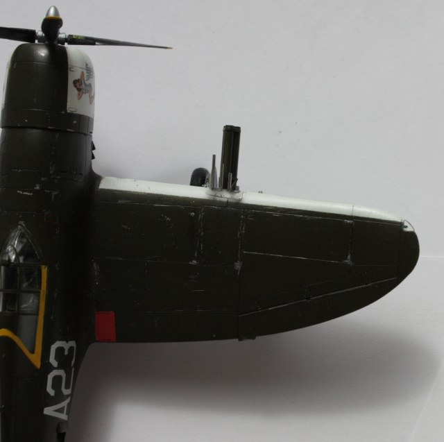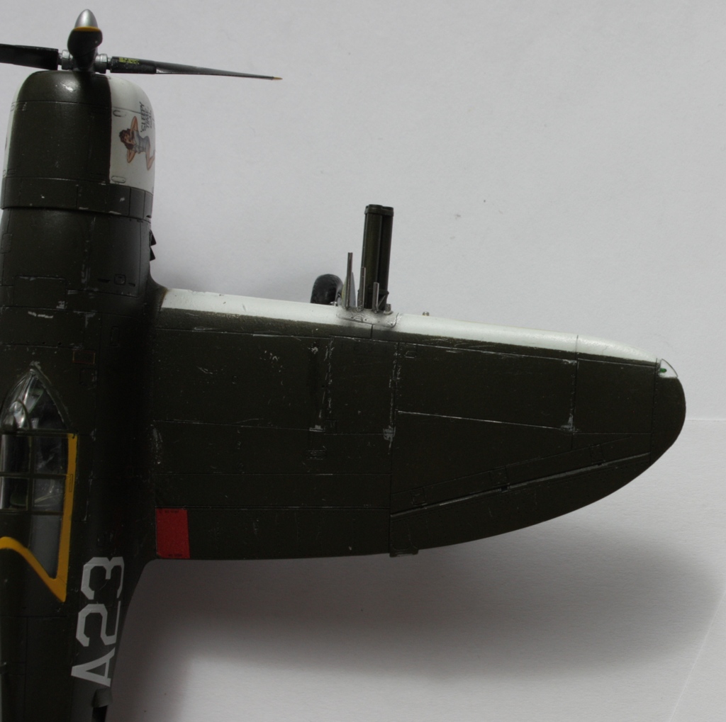 Как уже писал ранее - тамиевская модель наверное лучшая в 72-м масштабе. Считаю, что афтемаркет на неё если и нужен, то больше для самоудолетворения, чем по необходимости. Шпаклёвка практически не требуется, детальки подгонять не надо. Стыки только после склейки шкурить не надо забывать. Вот и здесь единственное, что доработал, так это с дисков срезал покрышки и поставил резиновые от «Экипажа» (их диски из смолы понравились меньше, чем из набора), добавил проводку гидросистемы на стойки шасси, обтекатели стволов пулемётов из игл, белый огонь на РН, тяги уборки створок хвостового колеса, привязные ремни. БАНО рассверлил сверлом 0,3 и капнул цветного лака. Краски тамиевские, акриловые XF-2, XF-4, XF-5, XF-53, XF-62 . Постшейдинг делал на верхних поверхностях, проходя по центру панелей сильно разбавленной краской XF-4. Тонировка – масляная краска на пинене. «Сухая кисть» - по кабине и нишам. Лак –«футура», финишный слой - полуматовый X-22 + Х-21. Окраска эта очень понравилась – без колебаний испольховал декали из набора. Фотографию нашёл ранее в журнале REVI, №53. На фото явно виден бак от «Лайтнинга», что не удивительно для тихоокеанского ТВД. Так что не уверен, что применение баков из набора корректно при данной окраске, но Р-38 у меня пока нет. Как появится – заменю их. Модель делал давненько уже и антенны тогда ещё не натягивал.