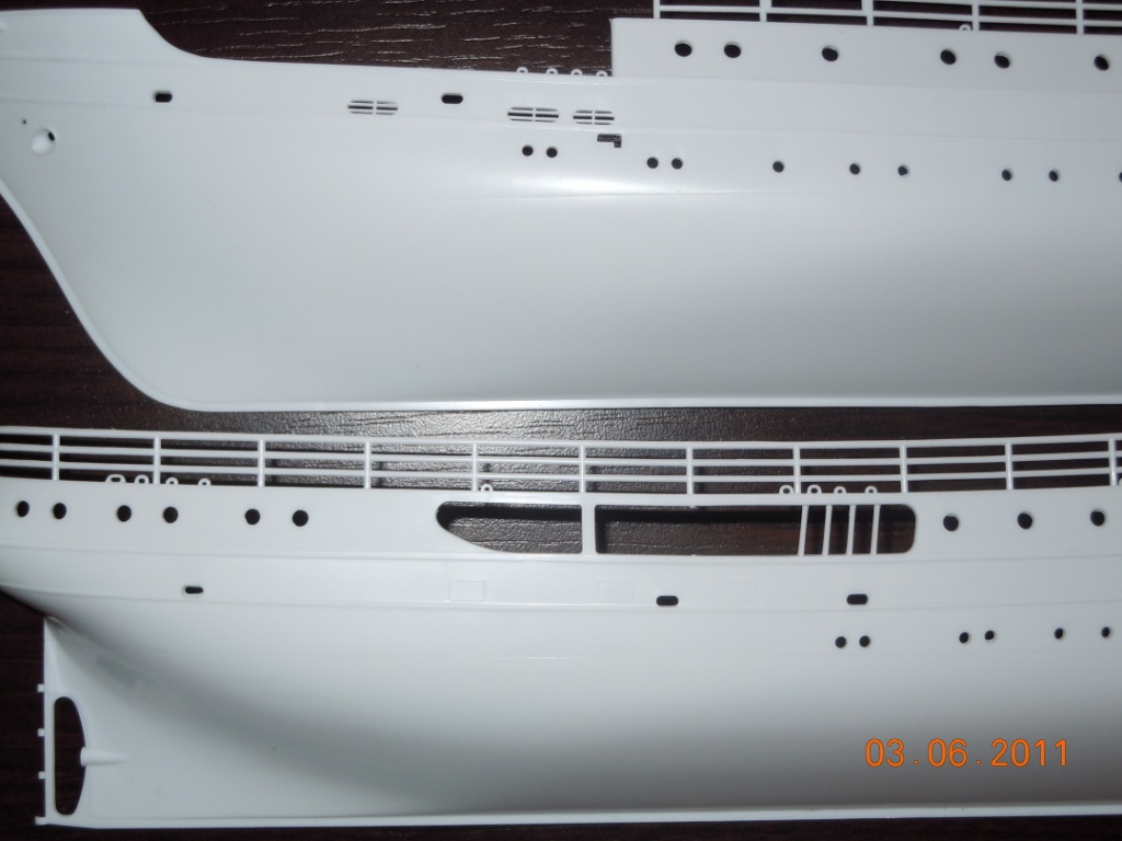 Но не все так безоблачно, очень много несоответствий, не только по матчасти я не вникал особо сильно,а по исполнению модели. Это видно даже на фото №2 , там на фото модели на коробки фрагмент палубы с установленными на ней лодками. Так вот очень сушеные и тощие матросы смогут пробегать промеж них. Ну и еще кое где по сравнинию с фото найденых мной в сети при подробном рассмотрении наводит на всякие мысли... о переделках я имею ввиду
