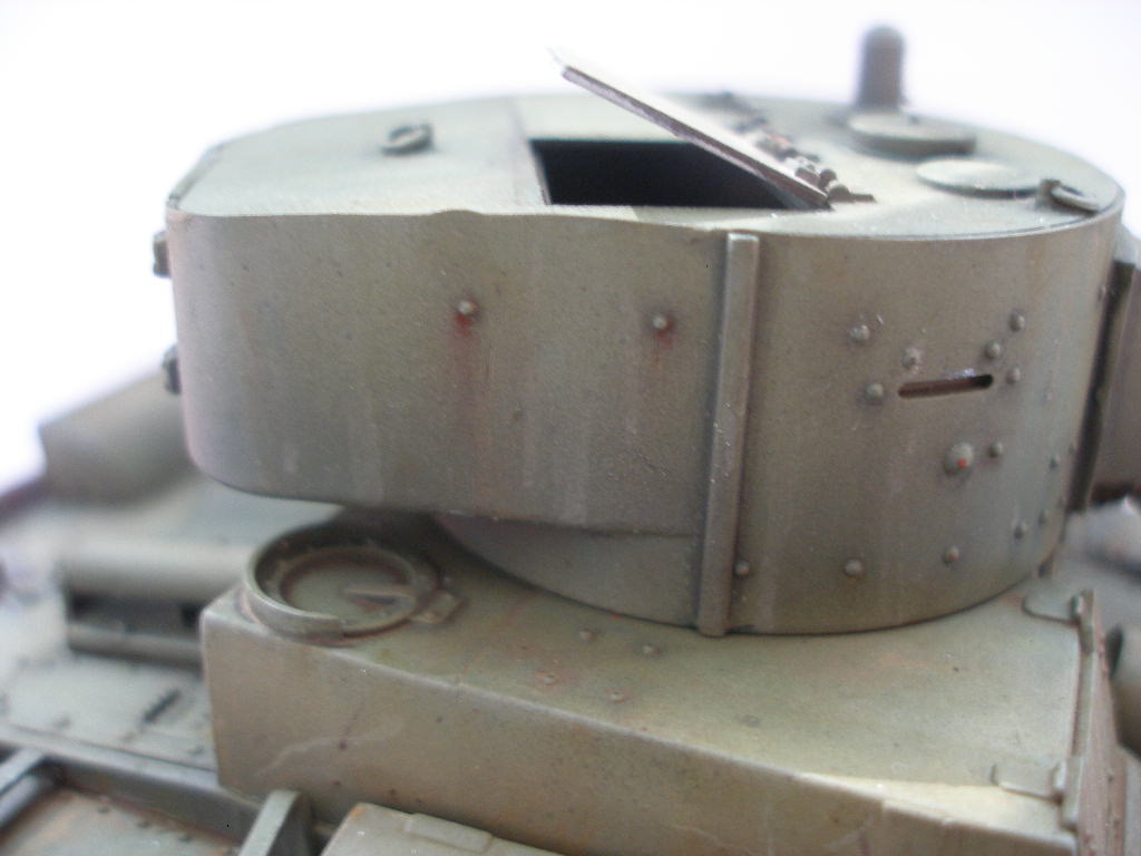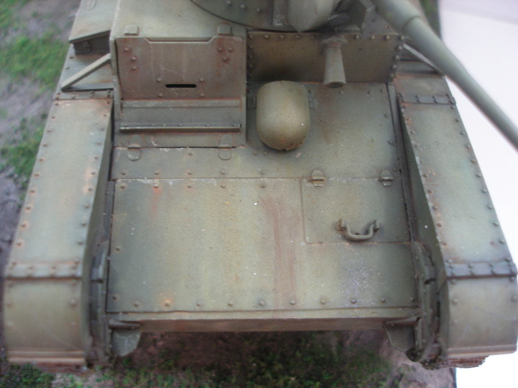 Оберон, Totenkopf - ну покрашен удовлетворительно, но это же не Т-26, а нечто по мотивам Виккерса с советским колоритом. Тут столько всего не хватает, что оценивать автора можно только как "из коробки" По сути, матчасть - 0. Вы хоть на маску пушки посмотрите. В ней одной косяков на суровый неуд. А чем объяснить строго тупой угол без малейшего скругления под передним катком у гусеницы? Срез ствола свежеокрашен, он что, ни разу не стрелял? Бронировка фары - вообще какая-то хрень. Дико толстые косынки на надгусеничных полках. Ладно, отступая пулемёт наши сняли. А зачем они сняли буксирные серьги? Толщина лобовой брони у этого Т-26 в масштабе никак не меньше 45 мм - зачем нам после такого какие-то Тридцатьчетвёрки? У люка мехвода и намёка нет на петли. И вот это нам предлагают считать моделью - копией??? Давайте я красиво окрашу суповую тарелку - и на этом основании предложу её считать отличной диорамой. А окрашено правда добротно.