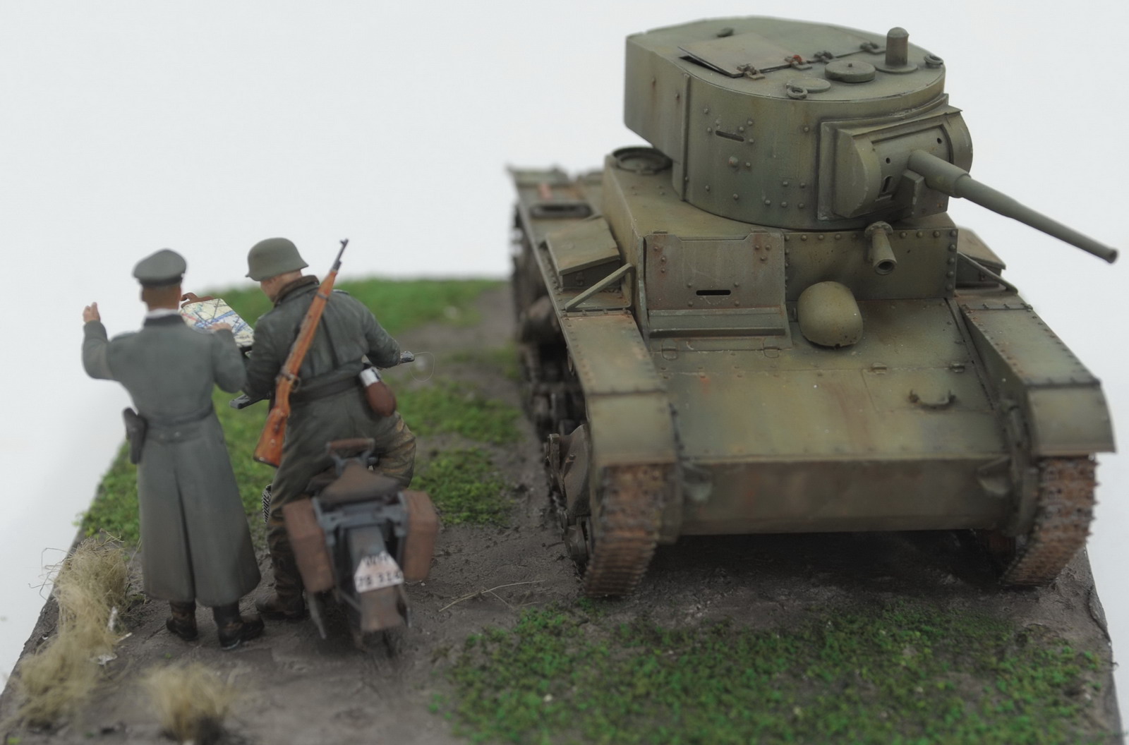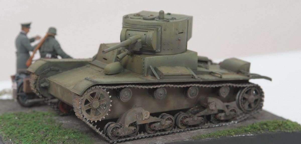 В общем работа понравилась, но вот доколе братья-моделисты вы будете Т-26 только в "-" показывать? Ну попробуйте кто то сделать 26ку победителем! Или хотя бы не подбито-брошенным....