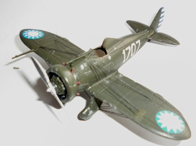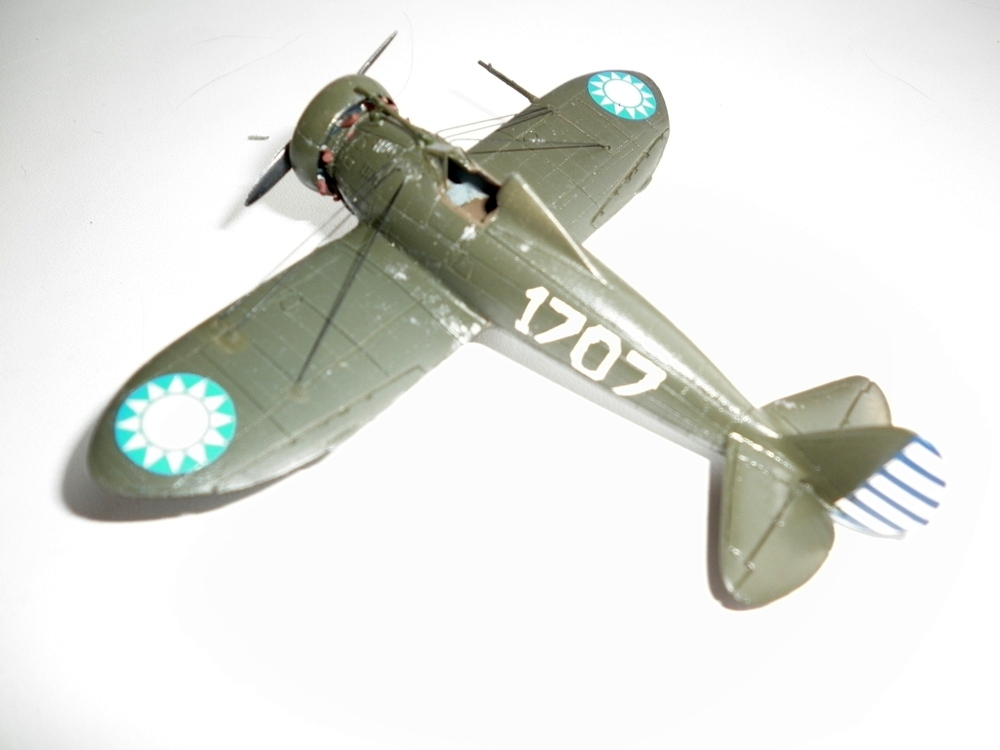 Купил эту модель в собранном ( но не окрашенном ) виде у одного хорошего человека из Старого Оскола. Руки до переделки дошли только сейчас. Поскольку хотелось сделать именно воевавшую машину то из филиппинских и китайских машин выбрал последнюю. Окраску взял на "Палитре крыла" - самолет китайского аса , совершившего на нем аварийную посадку на территории императорского дворца...