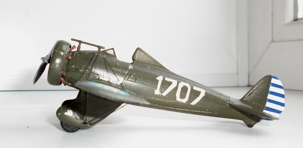 Но мне кажется, что на этой модели Вы схалтурили!!! Патрубки не высверлены, бортовые номера смотрятся "убийственно", вход расчалок в крыло смотрится неаккуратно (видно подкрашивание), клёпка и расшивка на ОЗ не видна, сколы есть, а выхлопов не видно (возможно я не прав, и его там быть не должно...)