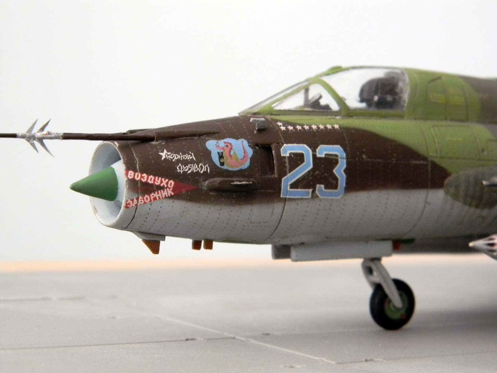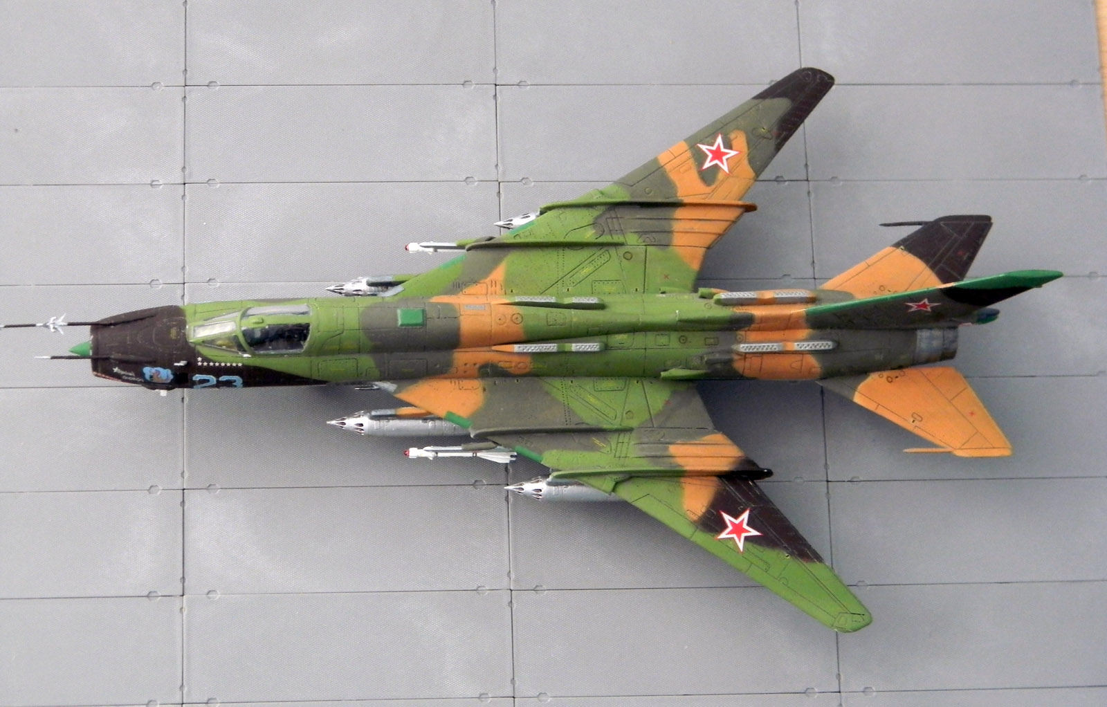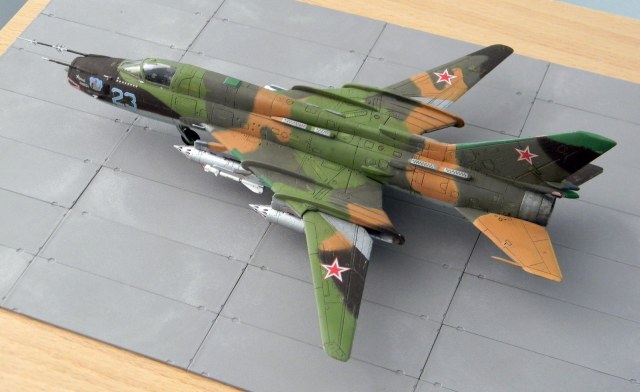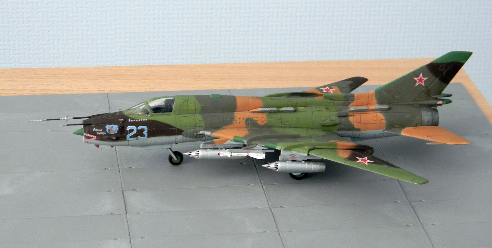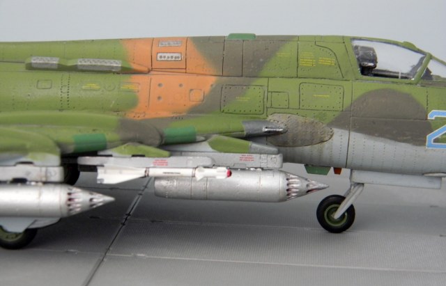 Декаль родная и еще добавил технички, оставшейся от Су-7. Окрашен эмалью АКАН, металлики Humbrol и АКАН. Расшивка и "обгадинг" - акрил, сверху матовый лак.