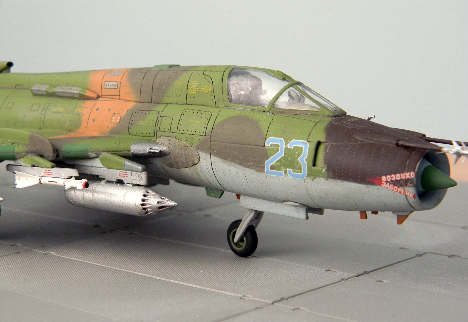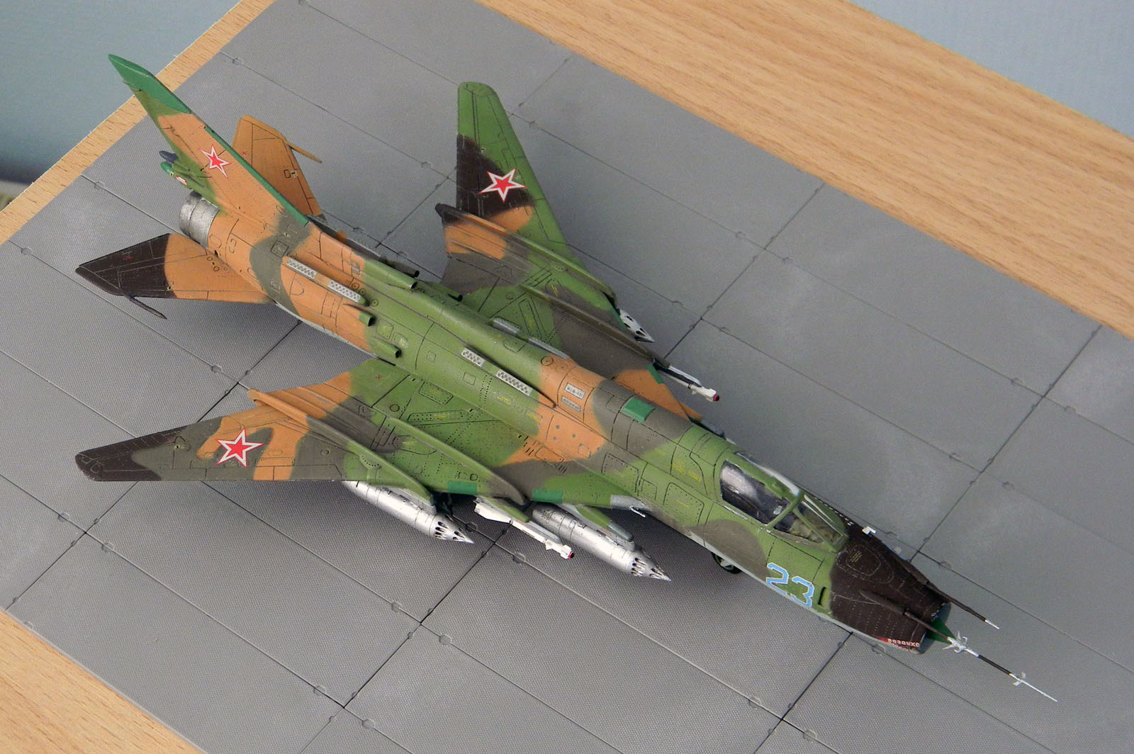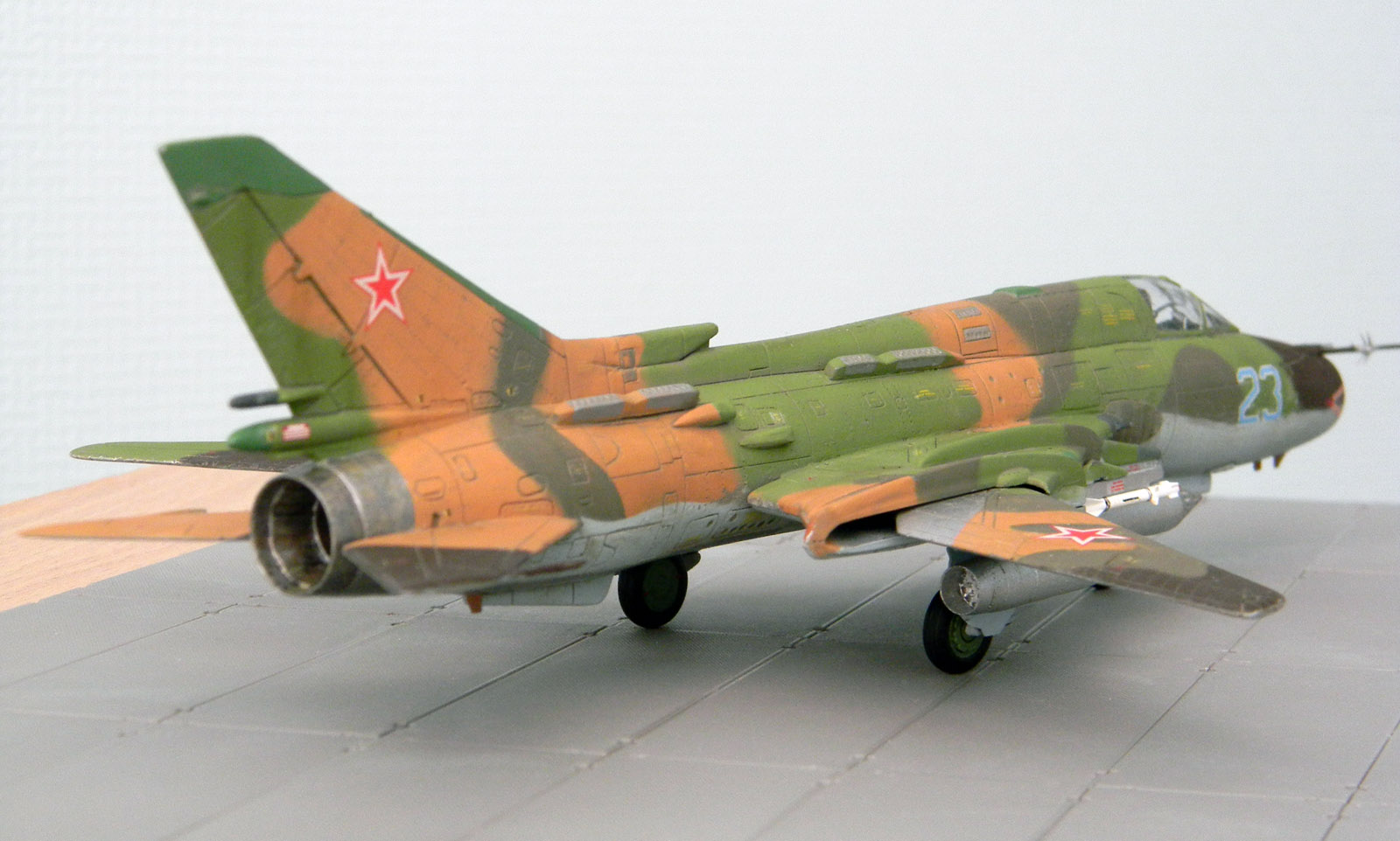 Декаль родная и еще добавил технички, оставшейся от Су-7. Окрашен эмалью АКАН, металлики Humbrol и АКАН. Расшивка и "обгадинг" - акрил, сверху матовый лак.