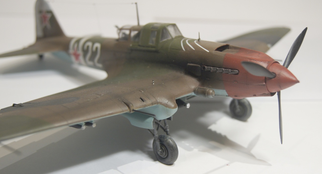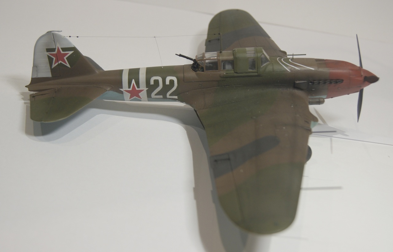 Уважаемые коллеги! Представляю Вам модель Ил-2 с бортовым номером 22 Георгия Тимофеевича Берегового. Модель изготовлялась с применением стандартных приемов и технологий. Единственным новшеством явилось комбинированное применение картона. А именно, силовой набор закрылок и новый кок винта изготовлены из картона. Весь процесс изготовления, если появится желание, Вы найдете здесь.