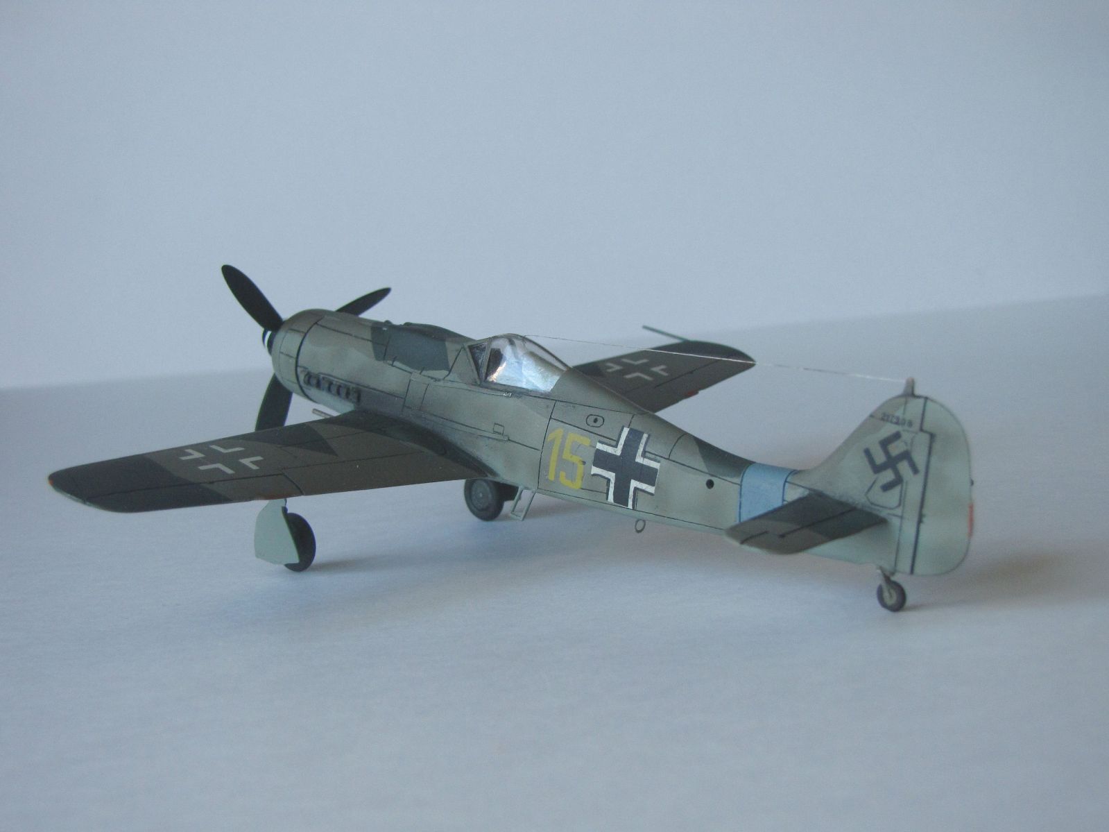 По инструкции модель должна изображать самолет Герхарда Кролля, JG54, но нигде не нашел никаких сведений, что он летал на Фокее-Вульфе, так что историческая достоверность сомнительна.