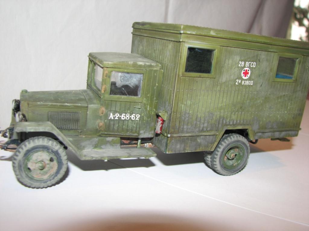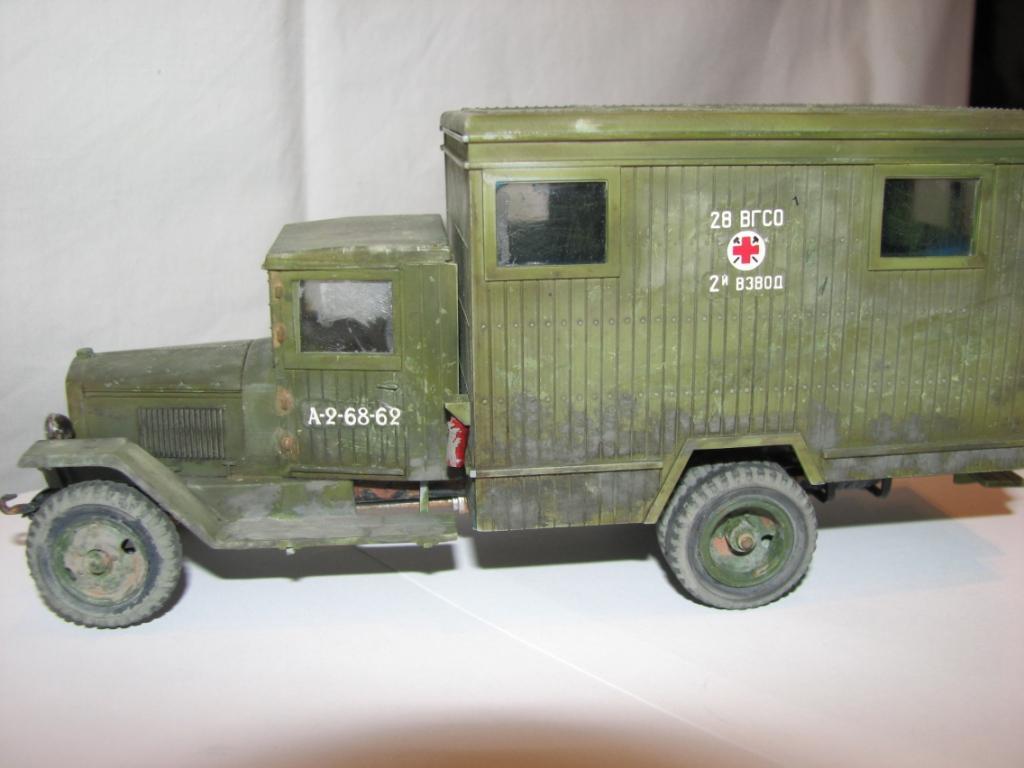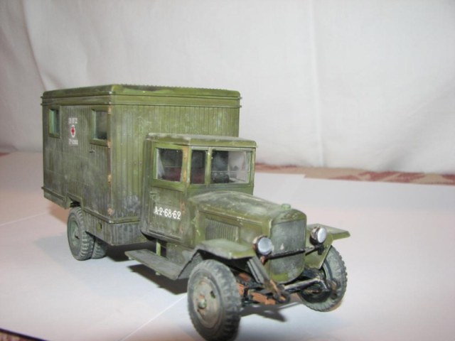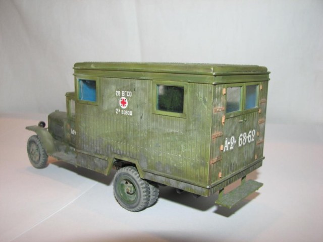 а по модели, выглядит хорошо. Аккуратная сборка. Единственно слишком навязчиво выглядит смывка на петлях, рессорах- ржавчиной... и пожалуй можно по металическим элементам ручкам, крюкам и прочему сухой кистью пошоркать?