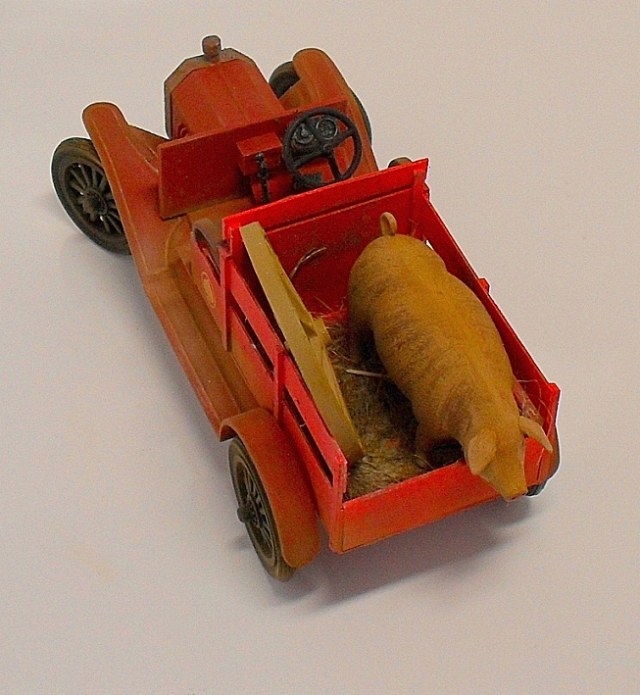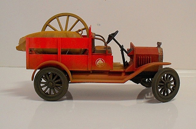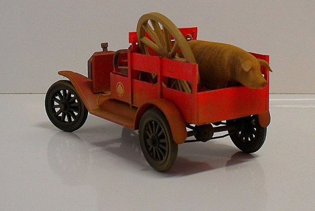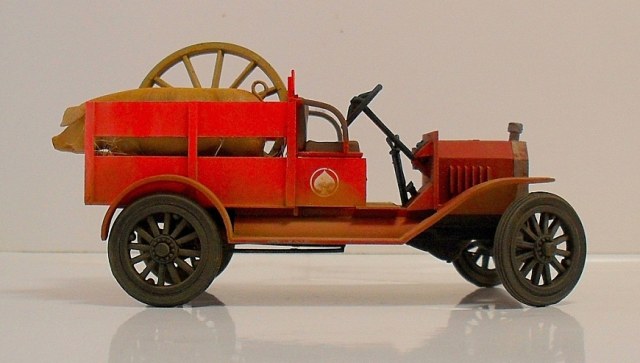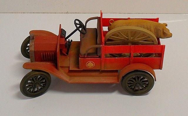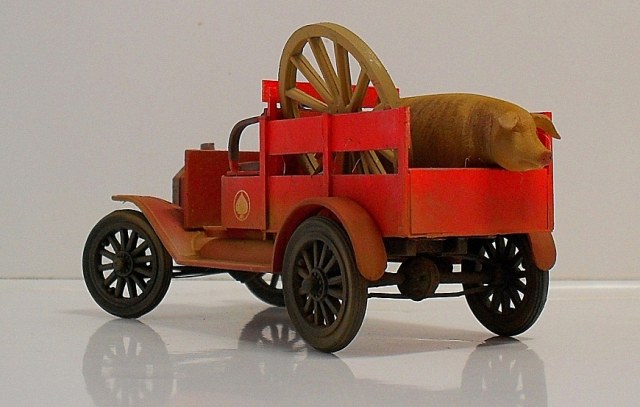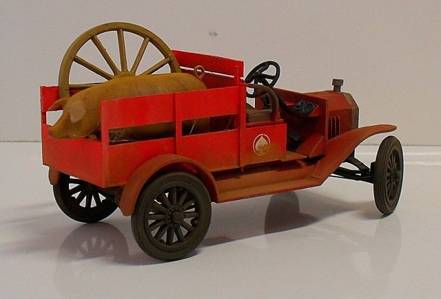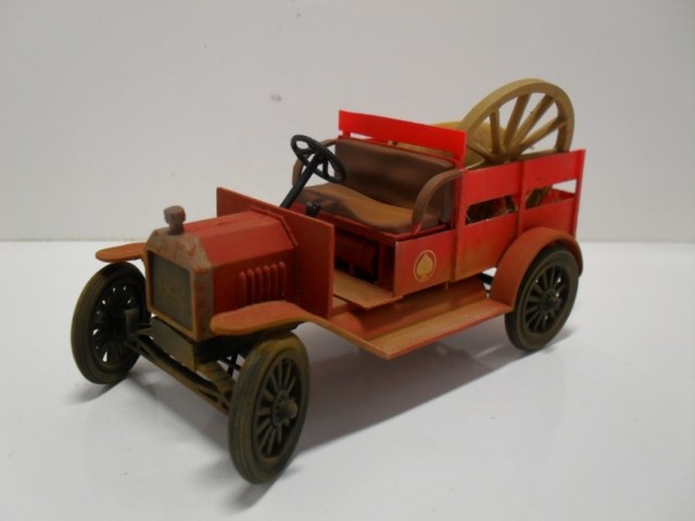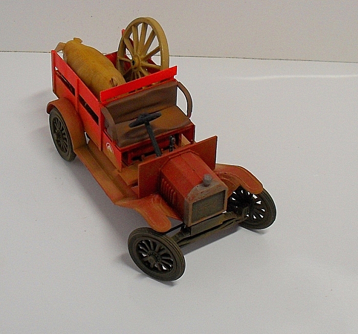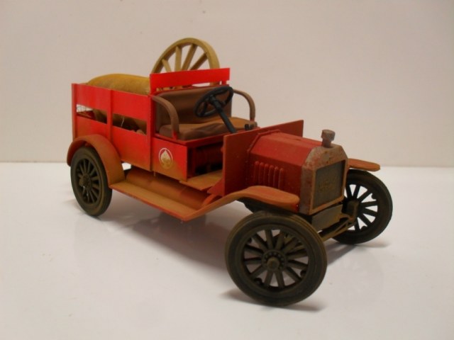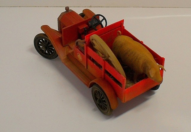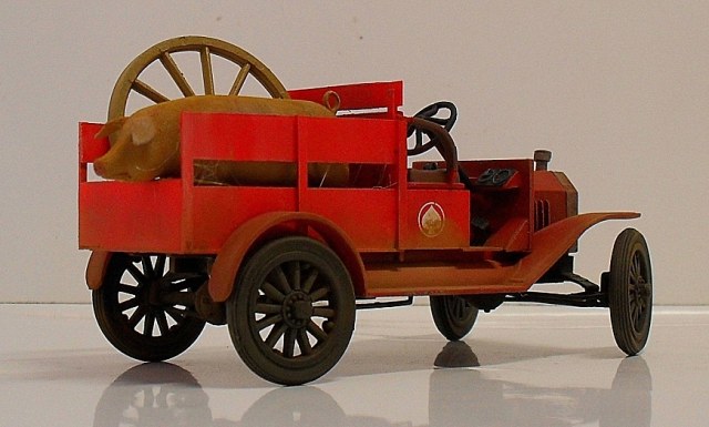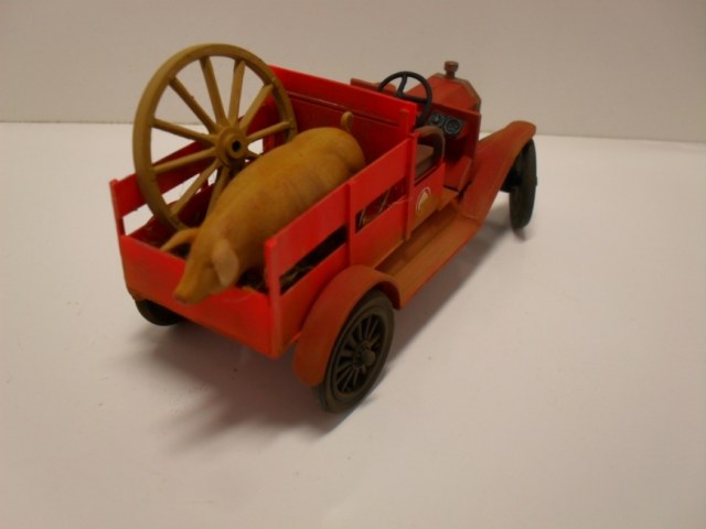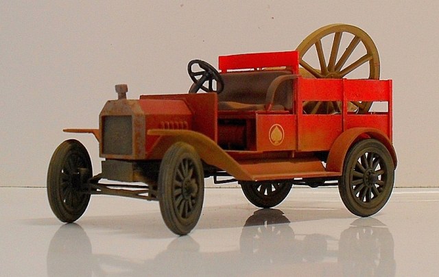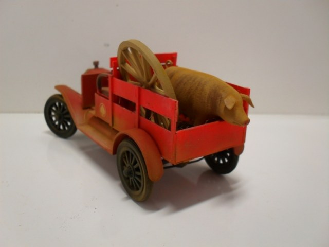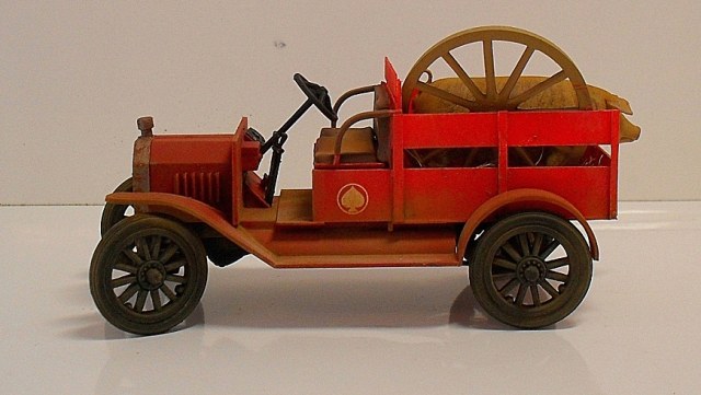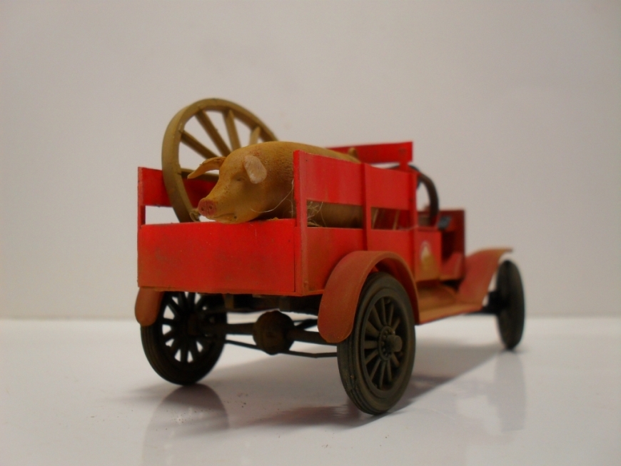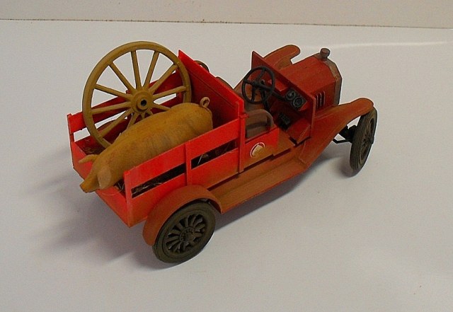 Машинка понравилась, вот только фото темноваты, деталей не разглядеть. Пробивается только очень яркий красный цвет, местами - алый. Для фермера - странный выбор. Хотя тогда феррари не было))) Не хватает, по-моему, выраженной структуры деревянного кузова.