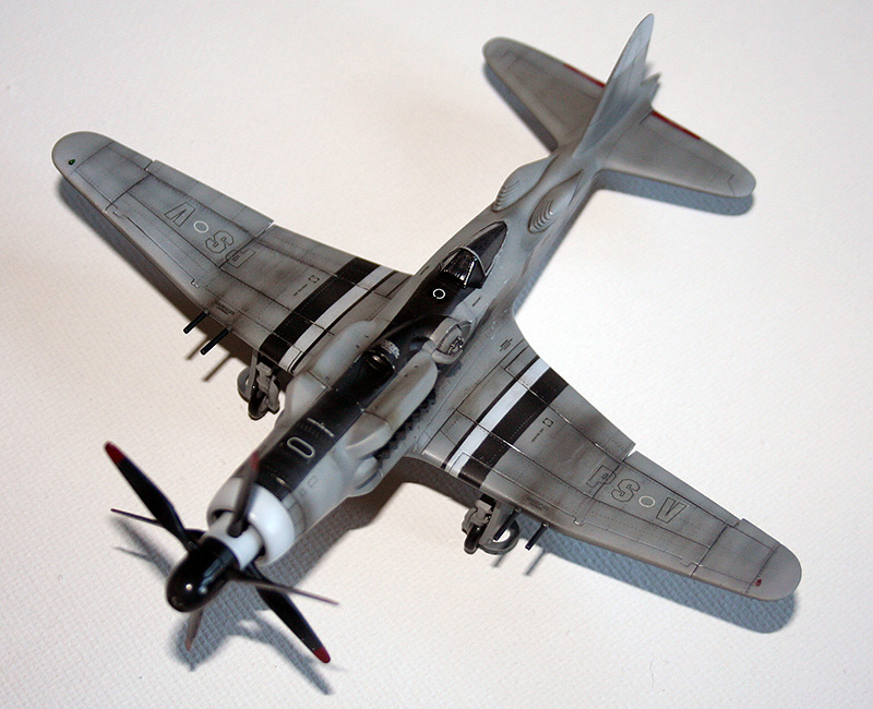 Вся химия и материалы - Tamiya. Красил акрилом. Прешейдинг, база, тонкий слой матового лака, нанес полосы и "мелочевку", декали (взял из цветных наборов технических надписей фирмы Wave), глянцевый лак, тонировка, почти все наносил аэрографом, в конце, слегка прошелся пигментами и кистью добавил немного "сколов", финишный матовый лак.