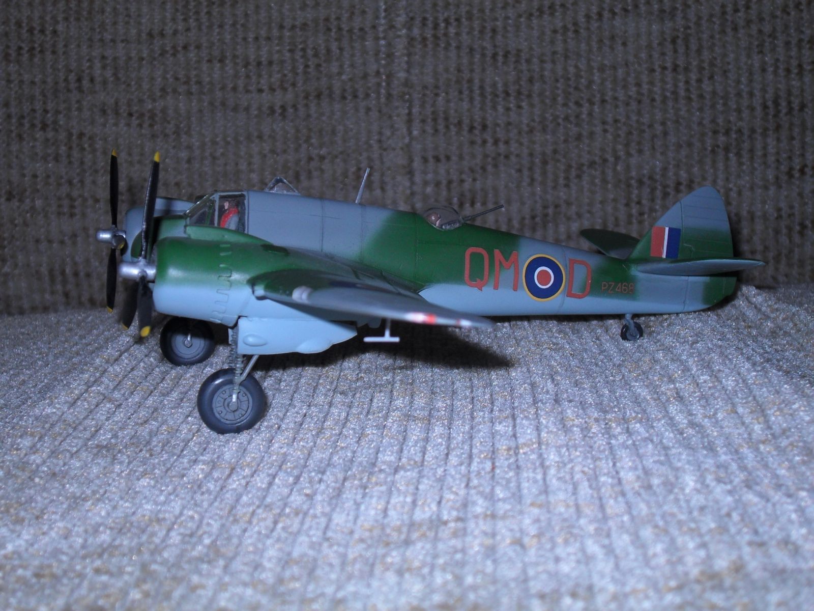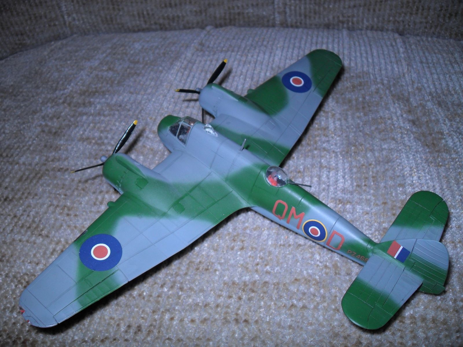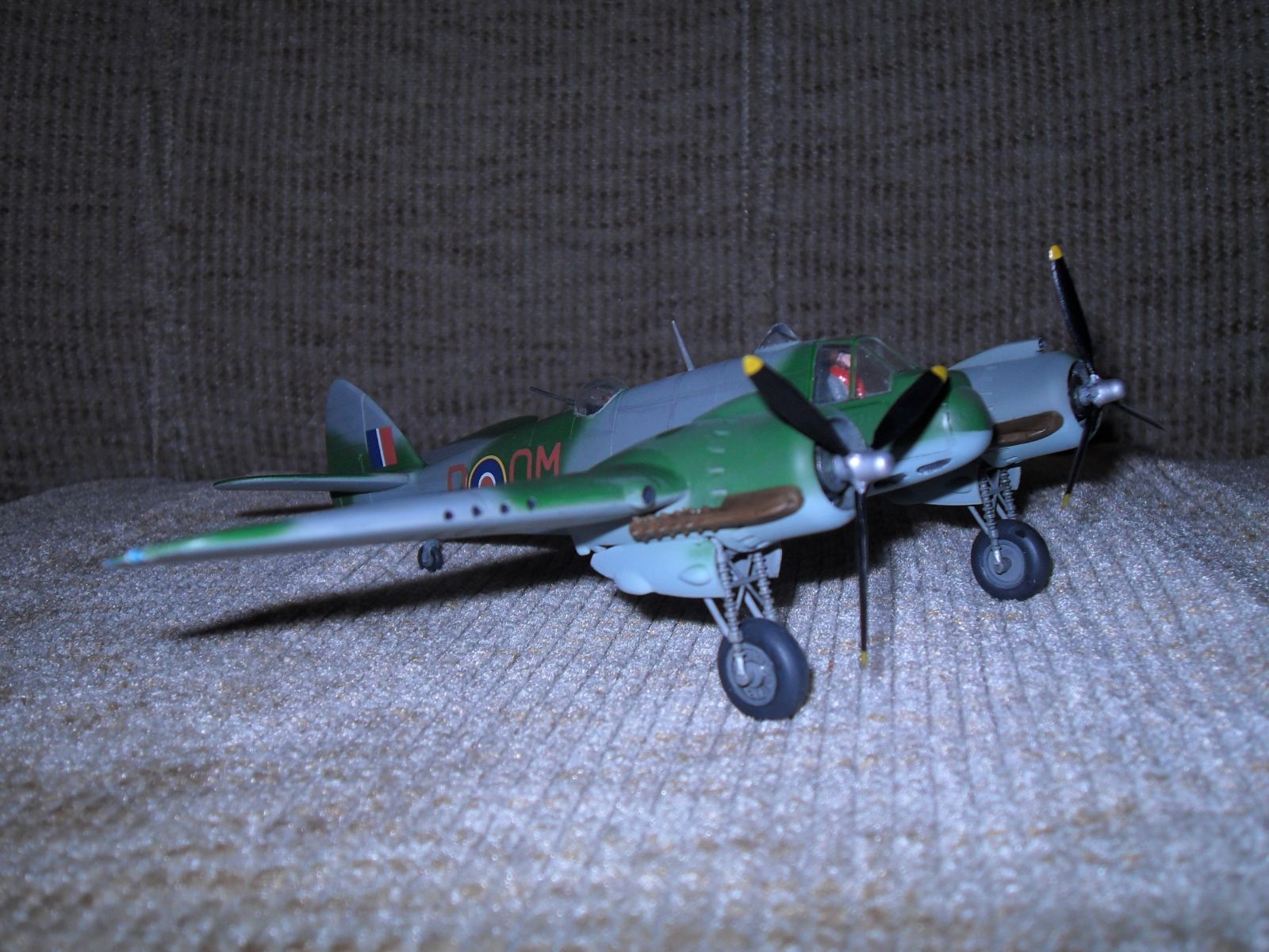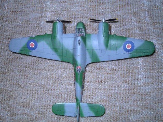 Еще одно ретро.Двухместный истребитель и противокорабельный штурмовик Королевских ВВС Великобритании.Эта машина предназначалась для полетов на малых высотах.В носовом отсеке размещался радар для поиска надводных целей,за кабиной располагалась экранированная пулеметная турель.Самолет имел специальное оборудование для сброса бомб и ракет с малой высоты .С 1944 года английские "Бофайтеры" стали использоваться для уничтожения малых кораблей противника как в европейской так и дальневосточной акваториях.вооружение:4-20 мм пушки и 7- 7.7 мм пулемета.до 1100 кг бомб на внешней подвеске.Модель собиралась в 1974 году,реставрировалась в 2003 году с перекраской,перерезкой расшивки,установки БАНО,приборки и боковых пультов в кабине пилота,пилот и штурман окрашен в цвет формы английских ВВС.Новая фара,пулеметные порты и гильзосбросы.выхлопные коллекторы доработаны за основу взяты чертежи из журнала Крылья Родины.В то время самолеты не пачкал и не обдирал.Приятного воспоминания пионерского и октябрятского возраста,кто это помнит.
