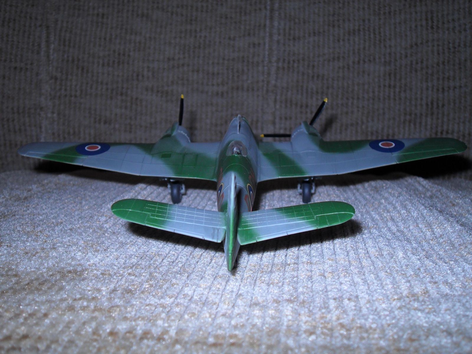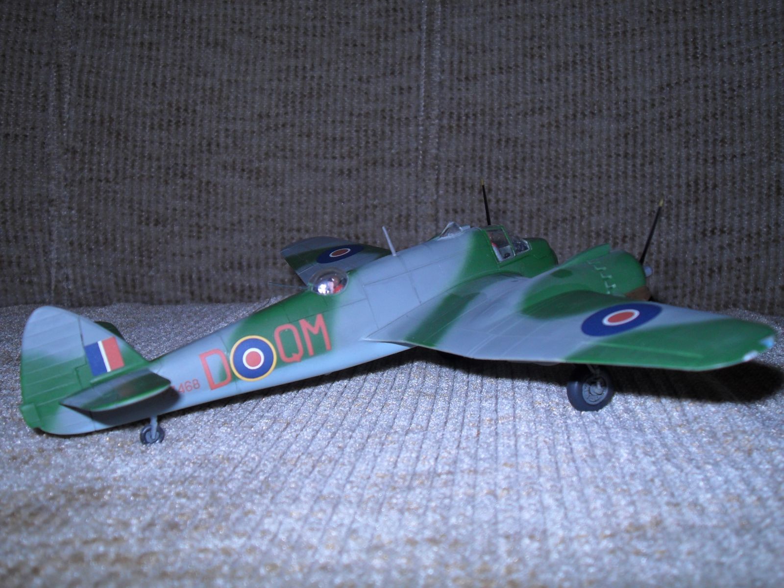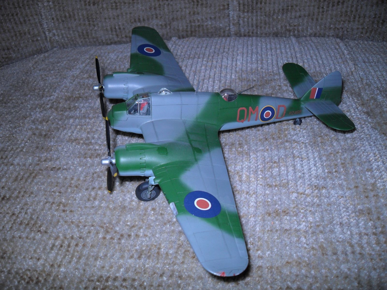 Еще одно ретро.Двухместный истребитель и противокорабельный штурмовик Королевских ВВС Великобритании.Эта машина предназначалась для полетов на малых высотах.В носовом отсеке размещался радар для поиска надводных целей,за кабиной располагалась экранированная пулеметная турель.Самолет имел специальное оборудование для сброса бомб и ракет с малой высоты .С 1944 года английские "Бофайтеры" стали использоваться для уничтожения малых кораблей противника как в европейской так и дальневосточной акваториях.вооружение:4-20 мм пушки и 7- 7.7 мм пулемета.до 1100 кг бомб на внешней подвеске.Модель собиралась в 1974 году,реставрировалась в 2003 году с перекраской,перерезкой расшивки,установки БАНО,приборки и боковых пультов в кабине пилота,пилот и штурман окрашен в цвет формы английских ВВС.Новая фара,пулеметные порты и гильзосбросы.выхлопные коллекторы доработаны за основу взяты чертежи из журнала Крылья Родины.В то время самолеты не пачкал и не обдирал.Приятного воспоминания пионерского и октябрятского возраста,кто это помнит.