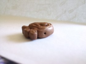 Могу предположить, что название Вашей работы может звучать "амулет острова Комодо", ибо существо, изображенное Вашими руками, непосредственно указывает на генетическую и мифическую близость с драконами (варанами) упоминаемого острова. В Японии также очень популярно мифическое существо Годжиро (Годзилла), и это имеет определенное отражение в творчестве островитян.
