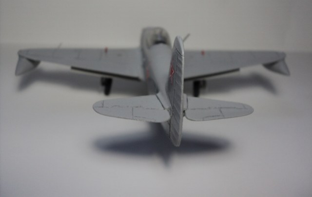 Вот не знаю чем отличается сборка Яков поршневых от реактивных. По моему плстик и там и там. Взять например стык стабилизатора и киля. Можно ведь его подточить и зашпаклевать. Помоему тут от типа самолета не зависит. Извините, но собрано коряво. Кружок Юный техник.