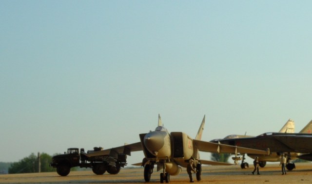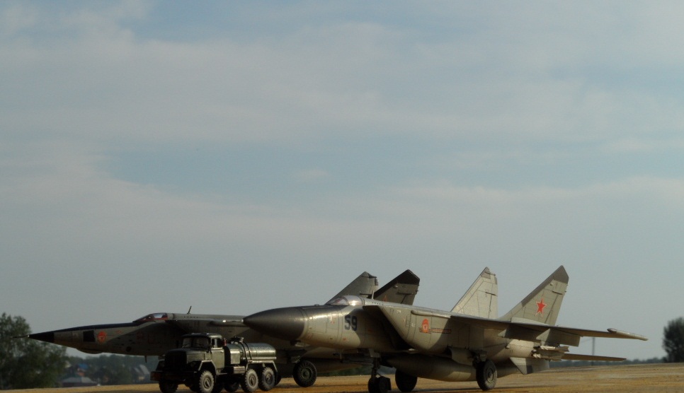 Ну вопервых это не техник - читайте описание внимательно,Миг 25 не выруливает- посмотрите в кабине нет никого,хаотично размещены в связи с ограниченностью фотографирования- я разве написал диорама, просто оживил малость фотки . Урал и зил больше для масштабности и к тому же гнде вы видите что они кого то заправляют?