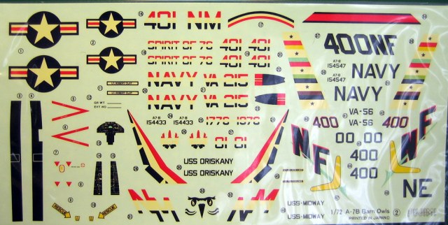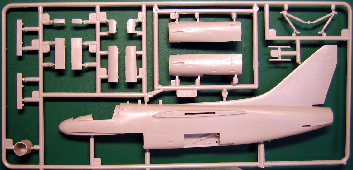 В небольшой коробке с вертикальной загрузкой находятся 5 литников из серого пластика в запаянных полиэтиленовых пакетах. Качество отливок хорошее, расшивка внутренняя, довольно четкая. Каких-либо критичных косяков не замечено, только облой местами попадается, но легкоудаляемый. Детали фонаря представлены на отдельном литнике из прозрачного пластика тоже весьма неплохого качества. Декаль на два варианта находится в запаянном полиэтиленовом пакете (извлекать не стал, ибо не знаю, когда до него руки дойдут). Инструкция на листе бумаге, свернутом в гармошку, краткая и понятная, на японско-английском языке. Предлагается два варианта окраски: VA-215 “BarnOwls” и VA-56 “Champions”. В матчасти не силен, но знатоки наверняка найдут почву для доработок. На мой взгляд – это довольно простая в сборке модель очень интересного и красивого прототипа.