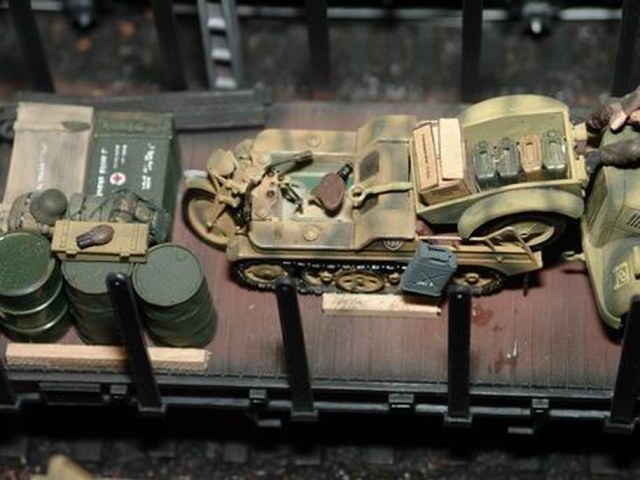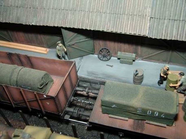 Масштаб работы поражает! Умопомрочительная детализация. А вот солдата с бутылкой неплохо было бы переснять. Да и собачек хотелось бы рассмотреть. Машиниста паровоза не видно, было бы неплохо лица солдат переснять. Тем более они такие шикарные.