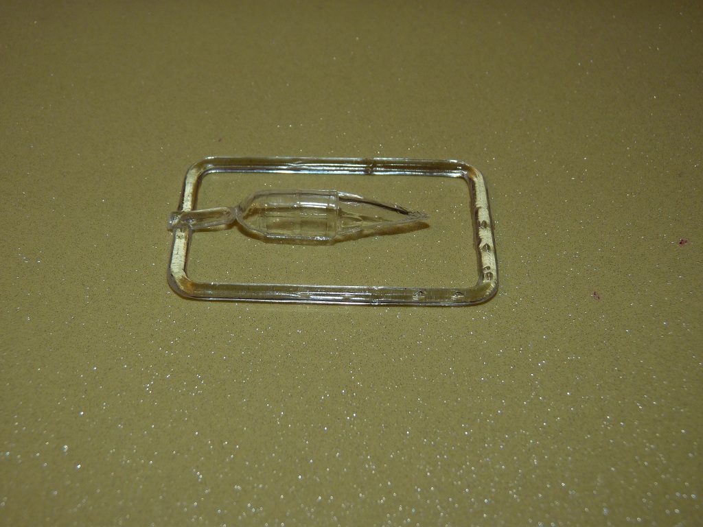 Литники изготовлены по технологии ЛНД, облой минимальный, расшивка внутренняя, местами "транйшейная", есть недолив хвоста с правой стороны, также не очень хорошо отлиты мелкие детали, много лишнего пластика, придется много шлифовать. Стыкуемость неизвестна, проверю в ходе сборки. Фонарь прозрачный, не очень толстый, но качество отливки оставляет желать лучшего.