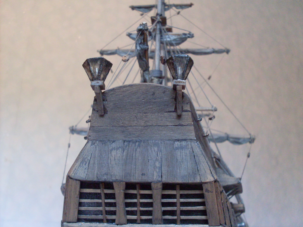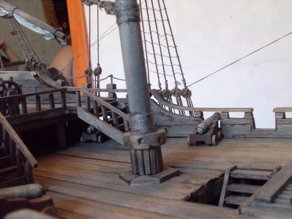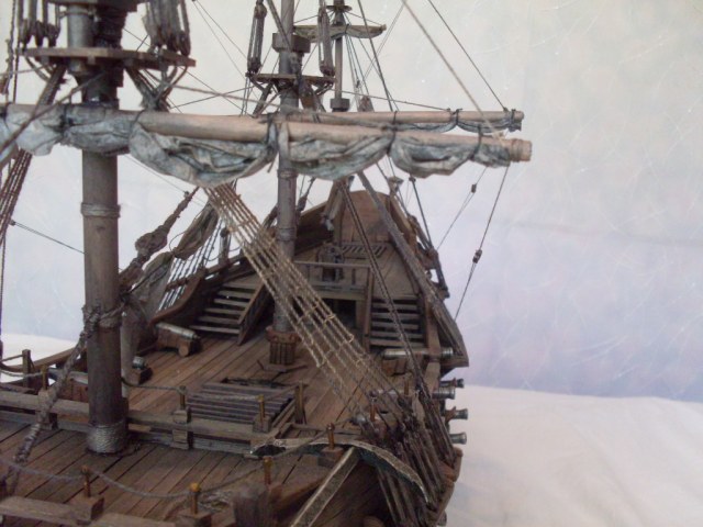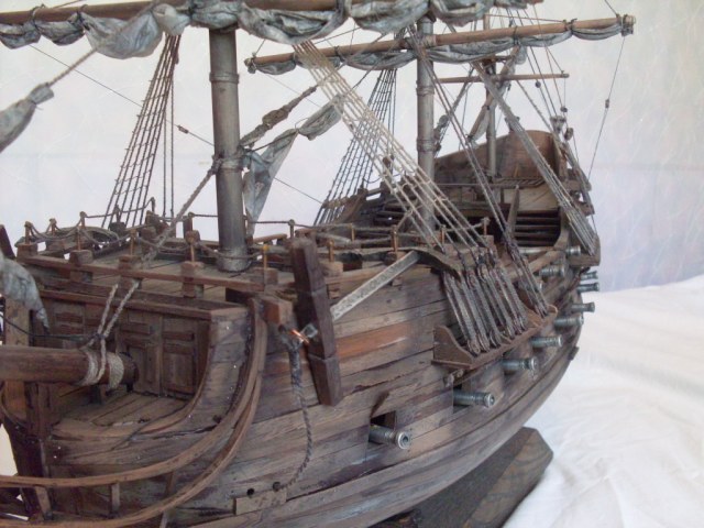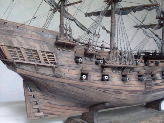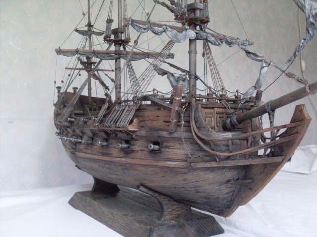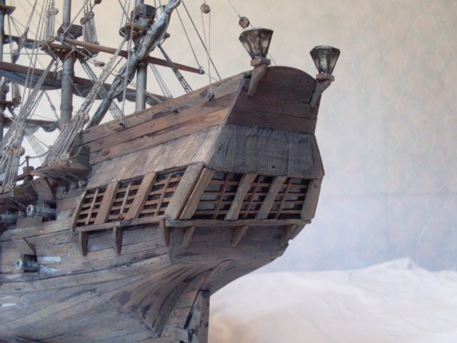 Если захотите сделать себе другой корабль 17 века, возьмите все таки за основу что-нибудь более реальное. Или собирательный образ стройте хотя бы на основе исторических источников, например Anderson. И морилкой пользоваться надо осторожно, я лично решил вообще не красить, после того как пытался теще отморить собранную собой полку для обуви, пошла пятнами дикими, пришлось выдавать за "так и задумано".