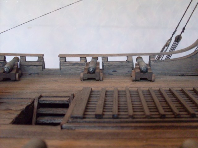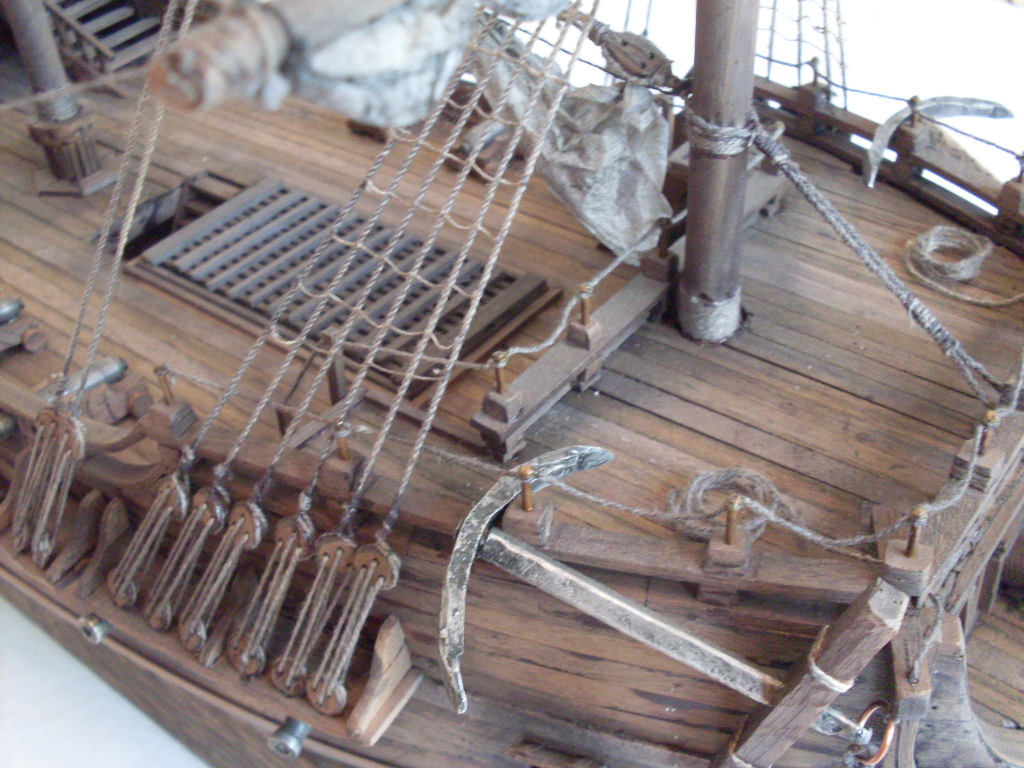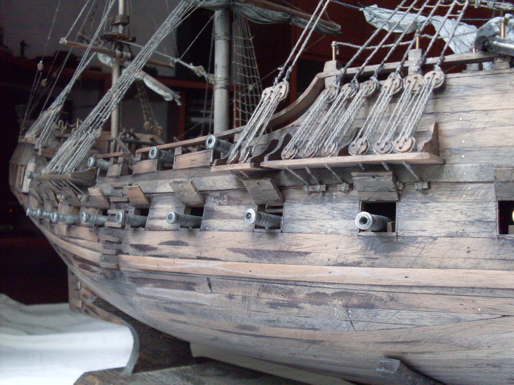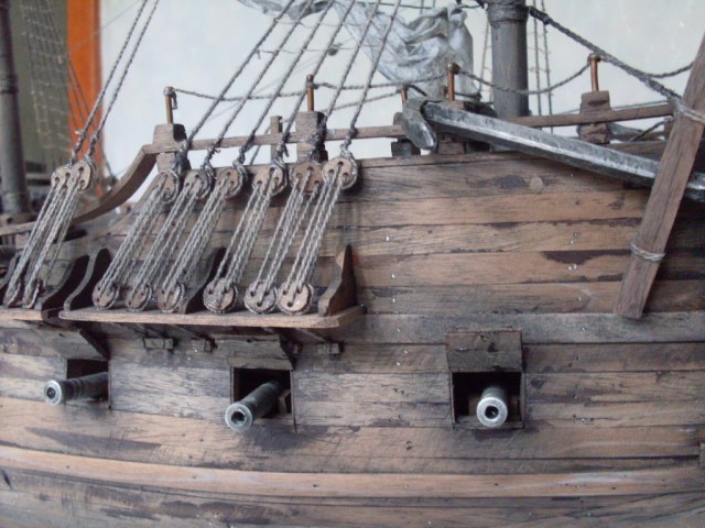 На счёт талей абсолютно с вами согласен.Всё это в проекте было и верёвки в орудийных портах,и много ещё мелочей.Но у меня с этим такелажем вся шея неметь стала.Поэтому в один момент сказал-всё харош.
