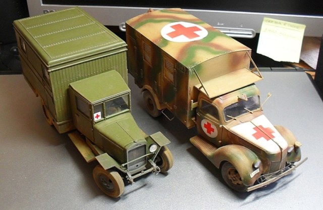 Дима, с самодельным сарайчиком это ЗиС трофейный, немецкий, так что происхождение крестов вполне объяснимо, см. Форд и другие санитарки. По одной из двух известных фотографий ЗиС-44, это заводские фото, и если приглядется, то кунг там вовсе другой, т.е. менять надо целиком. Ну и по остальным - Это довоеные, либо городские машины, ГАЗ-55 к сожалению просто картинка, так что тоже о многом не говорит, ВЭ тоже предлагает некие медицинские декали. О белых полосах, они присутствуют не только на фото ЗиС-44, но и ЗиС-16, но тоже нескоько фотографий, т.е. непонятно, на всех или как.