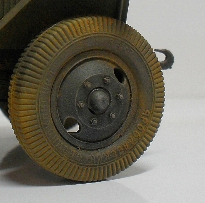 О модели: собрана из двух наборов, шасси и кабина – ЗиС-5В от Звезды, кунг – ЗиС-44 от ВЭ, обзоры можно посмотреть здесь - http://www.karopka.ru/community/user/11260/?MODEL=214928 и здесь - http://www.karopka.ru/community/user/9694/?MODEL=207366. Сильно ровнять кунг не стал, машинка фронтовая, разболтанная, это не немцы, тут всё жёстче. Передние колёса – резина АРК Моделс, диски Звезда, гайки Мастер Клаб, задние – родные, но тоже заменены болты на гайки.