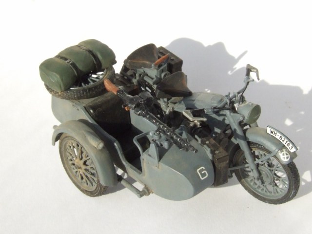 Известный набор от Звезды - мотоцикл BMW R-12. В комплекте есть экипаж, 2 варианта фигурок и даже хрюшка =)).