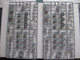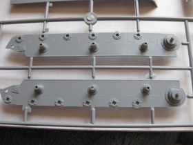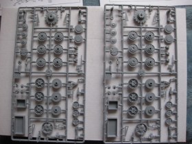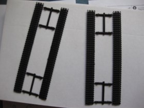 Прикупил такой вместе с наборными траками от того же ВЭ.На всех траках следы от толкателей.Рекомендую шпатлевать не отрезая от литника(так будет удобней)
