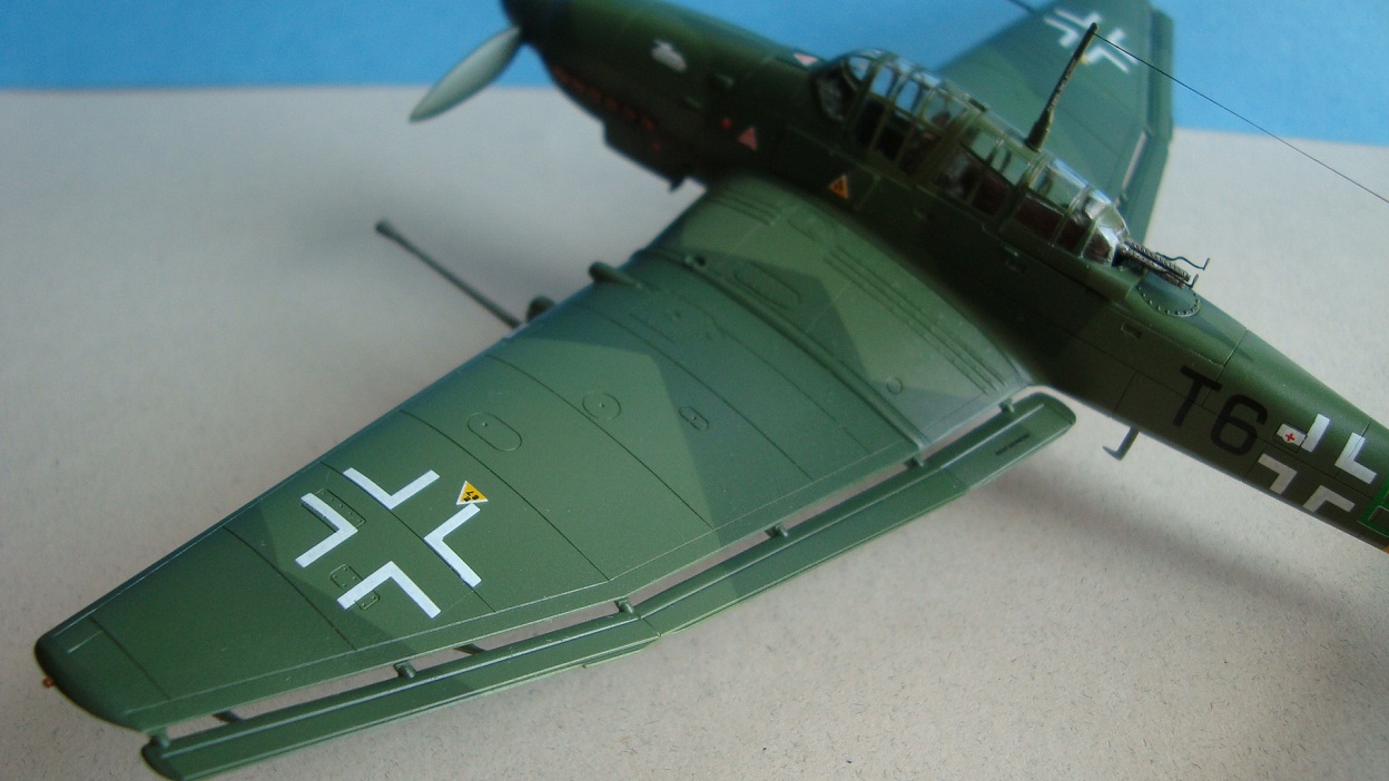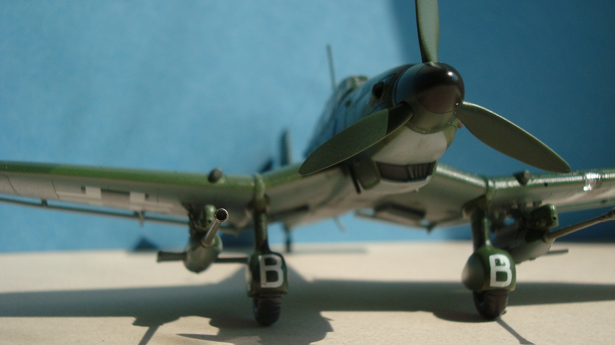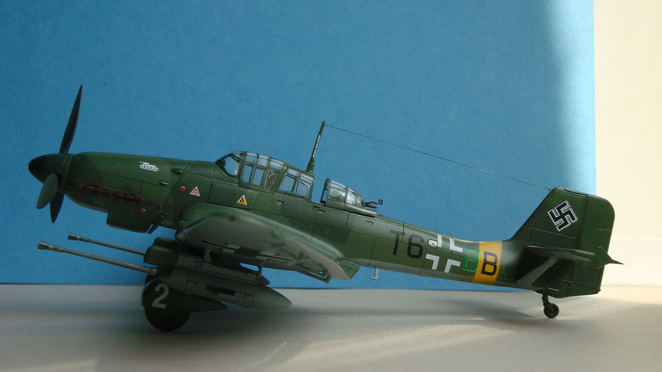 Красивая модель! непонравилось стекло фары, кривое какоето, криво наклеен треугольник на правом крыле и крест на левом борту неровный, в остальном сделано здорово!)) стволы пушек я бы наверно натёр простым карандашом но это нада пробовать)