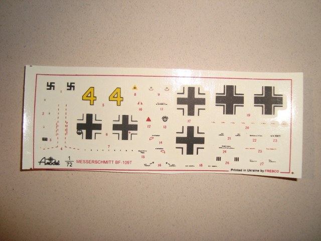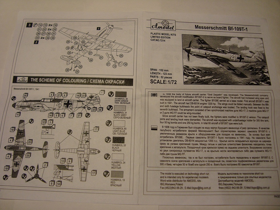 По модели. Это из раннего А-модела, потому качество не ахти. Bf-109Т еще делали какие-то поляки, тоже шорт-ран. Лет 10 назад я собрал А-моделовский Bf-109Т, красил кистью.