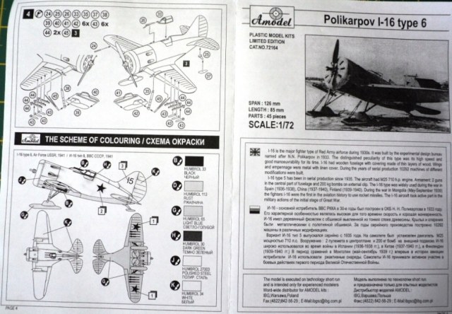 Модель представляет из себя раннее творчество фирмы Amodel, и предназначена для тех, кто хочет собрать всю линейку И-16 разных типов.